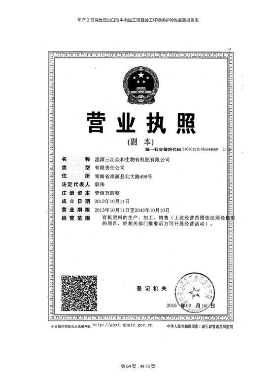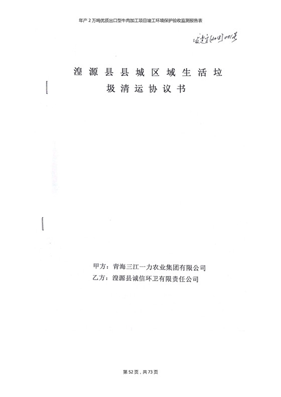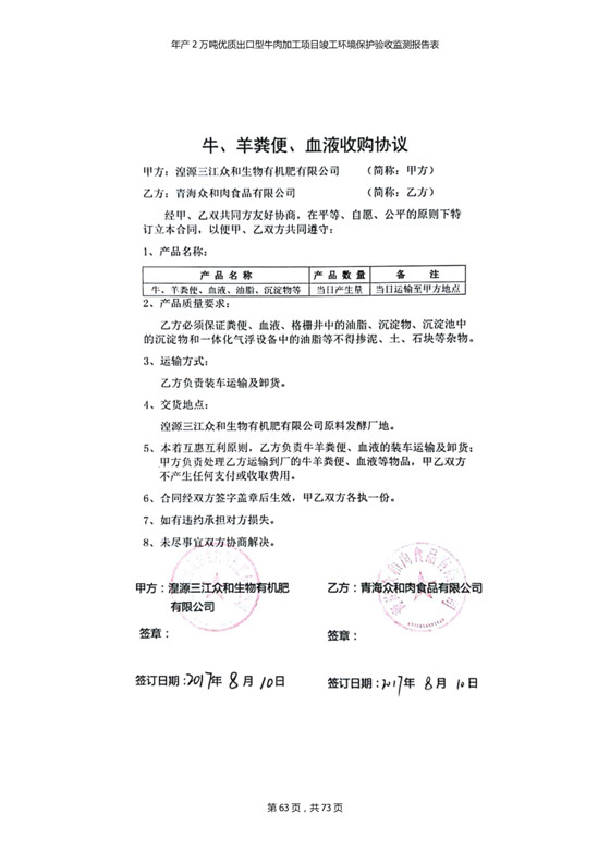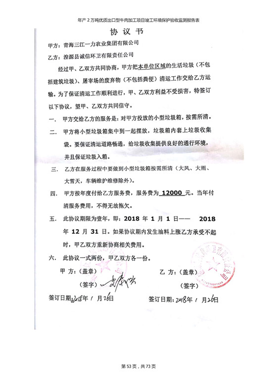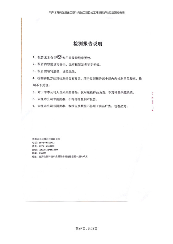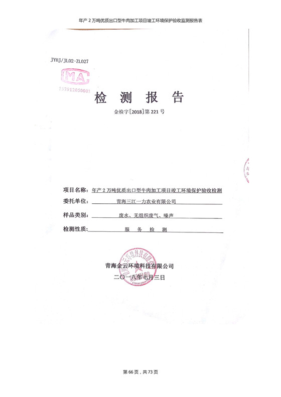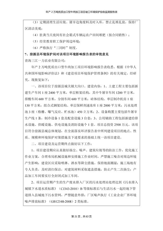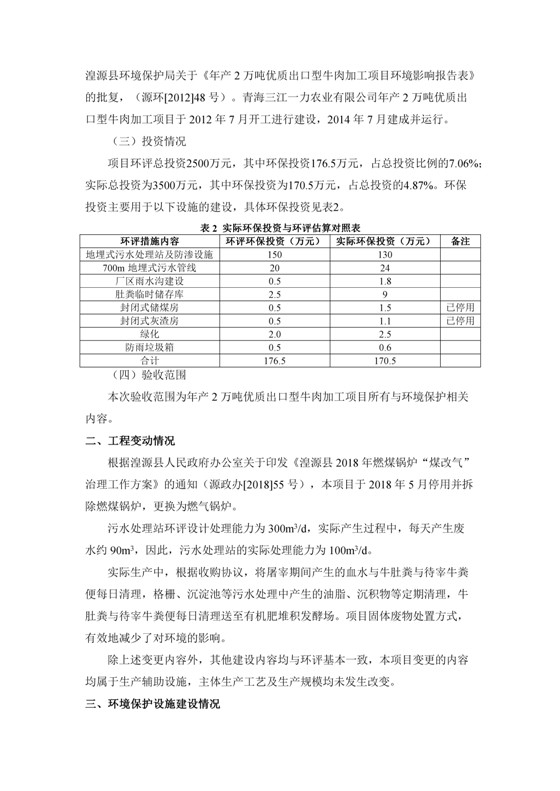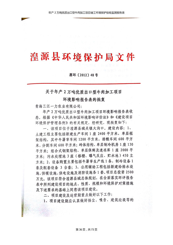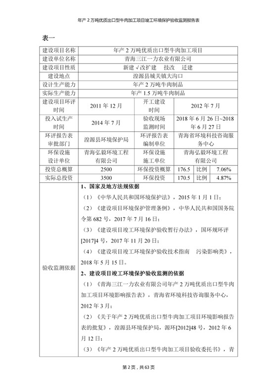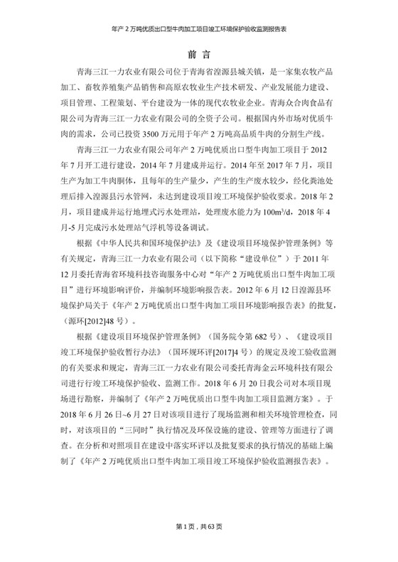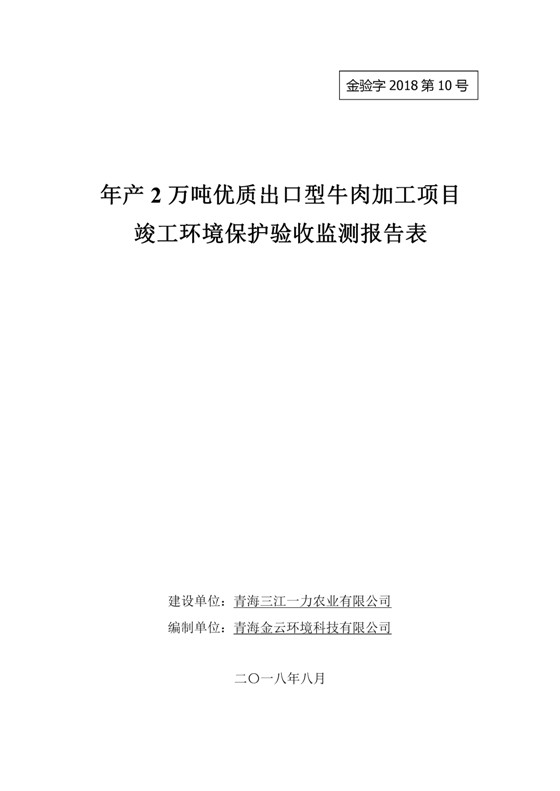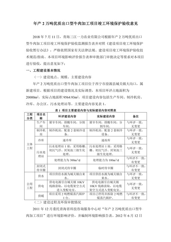 2018年7月11日,青海三江一力農(nóng)業(yè)有限公司組織召開年產(chǎn)2萬噸優(yōu)質(zhì)出口型牛肉加工項目竣工環(huán)境保護(hù)驗收會。