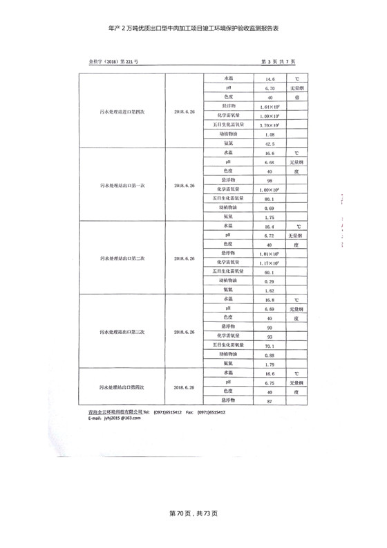 根據(jù)中華人民共和國國務(wù)院令第253號《建設(shè)項目環(huán)境保護(hù)管理條例》(中華人民共和國國務(wù)院令第682號《國務(wù)院關(guān)于修改〈建設(shè)項目環(huán)境保護(hù)管理條例〉的決定》和《建設(shè)項目竣工環(huán)境保護(hù)驗收暫行辦法》,嚴(yán)格依照有關(guān)法律法規(guī),建設(shè)項目環(huán)境保護(hù)設(shè)施驗收技術(shù)規(guī)范,本項目環(huán)評報告表和環(huán)保審批部門審批意見以及企業(yè)自行驗收相關(guān)要求等對本項目進(jìn)行驗收,本項目符合環(huán)保驗收條件,可以通過環(huán)保驗收。 青海三江一力農(nóng)業(yè)有限公司組織召開年產(chǎn)2萬噸優(yōu)質(zhì)出口型牛肉加工項目(一期工程)驗收組意見.
