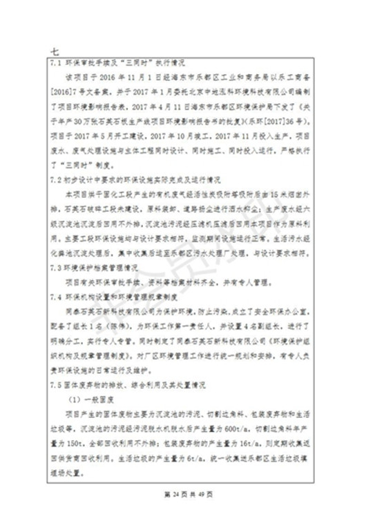 根據(jù)中華人民共和國國務(wù)院令第253號《建設(shè)項(xiàng)目環(huán)境保護(hù)管理?xiàng)l例》(中華人民共和國國務(wù)院令第682號《國務(wù)院關(guān)于修改〈建設(shè)項(xiàng)目環(huán)境保護(hù)管理?xiàng)l例〉的決定》和《建設(shè)項(xiàng)目竣工環(huán)境保護(hù)驗(yàn)收暫行辦法》,嚴(yán)格依照有關(guān)法律法規(guī),建設(shè)項(xiàng)目環(huán)境保護(hù)設(shè)施驗(yàn)收技術(shù)規(guī)范,本項(xiàng)目環(huán)評報(bào)告表和環(huán)保審批部門審批意見以及企業(yè)自行驗(yàn)收相關(guān)要求等對本項(xiàng)目進(jìn)行驗(yàn)收,本項(xiàng)目符合環(huán)保驗(yàn)收條件,可以通過環(huán)保驗(yàn)收。 海東市樂都區(qū)同泰科技有限公司竣工環(huán)境保護(hù)驗(yàn)收監(jiān)測報(bào)告公示