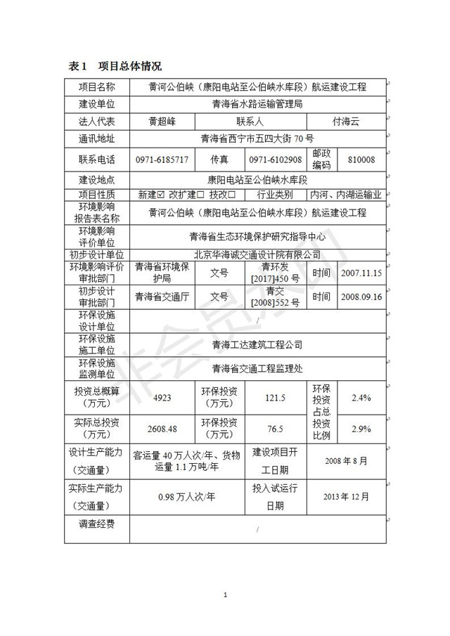 黃河公伯峽(康楊電站至公伯峽水庫段)航運建設(shè)工程竣工環(huán)境保護(hù)驗收調(diào)查報告表公示發(fā)布日期:(2018-11-16) 點擊次數(shù):2633 |