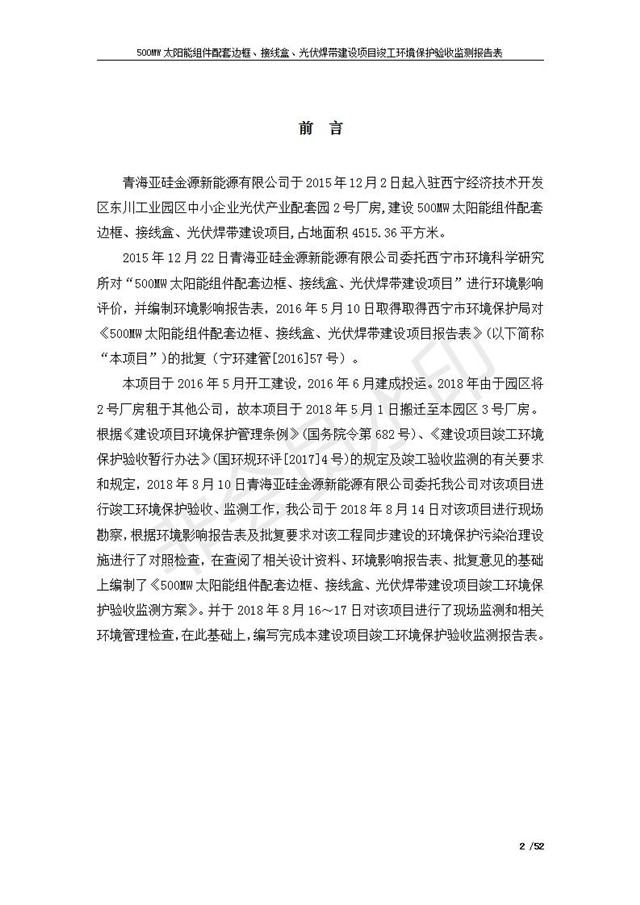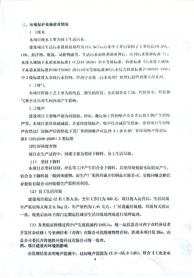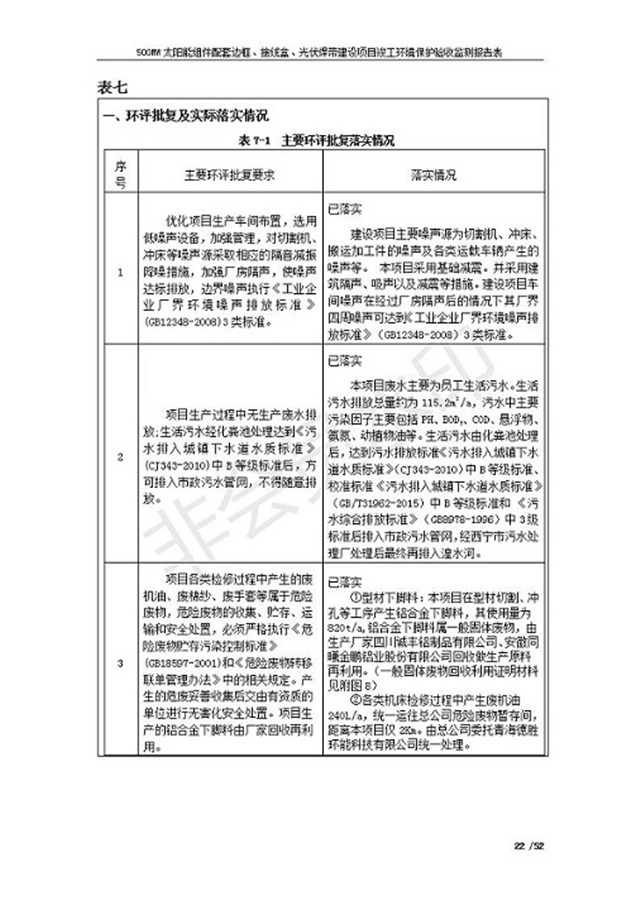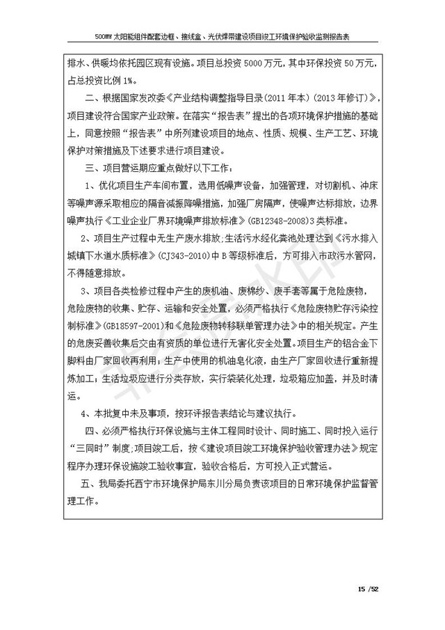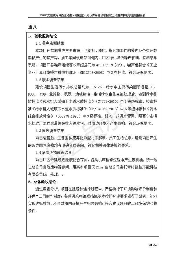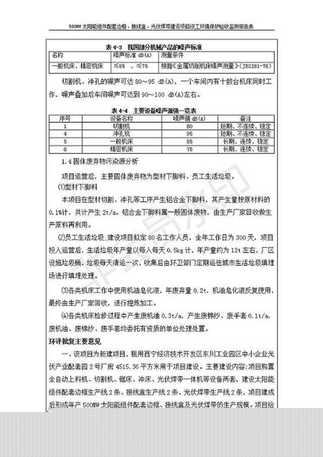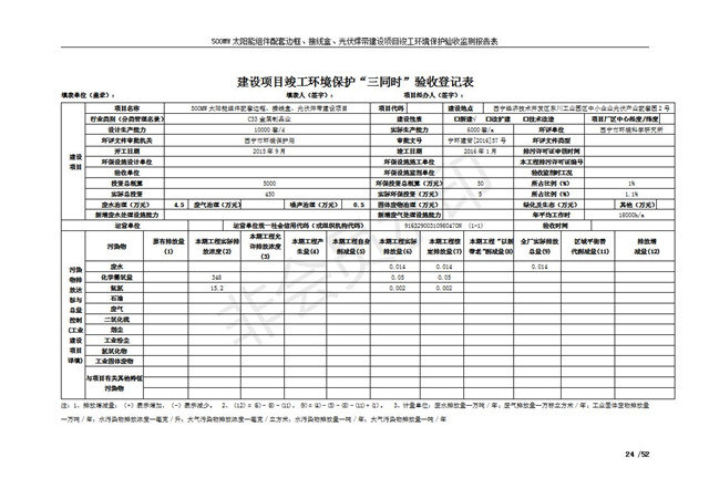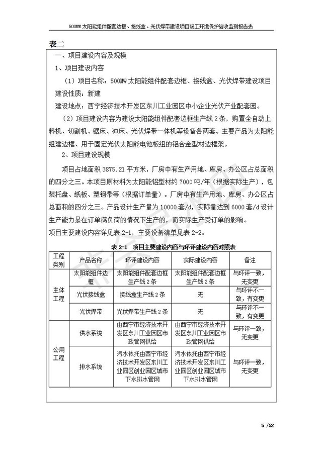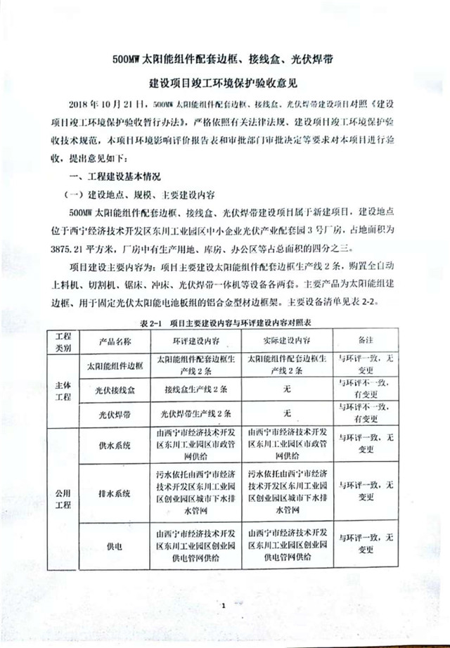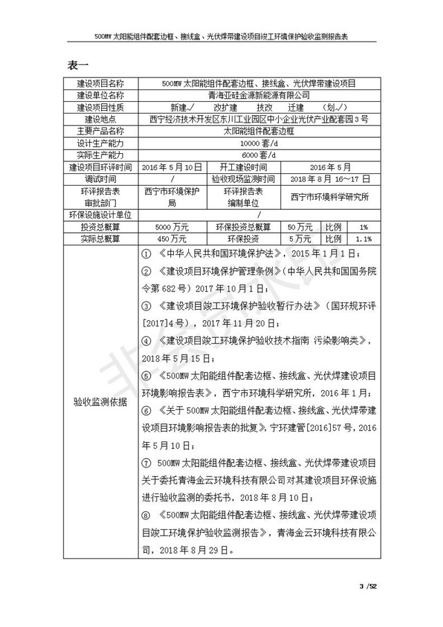 500MW太陽能組件配套邊框、接線盒、光伏焊帶建設(shè)項(xiàng)目竣工環(huán)境保護(hù)驗(yàn)收監(jiān)測報(bào)告表公示