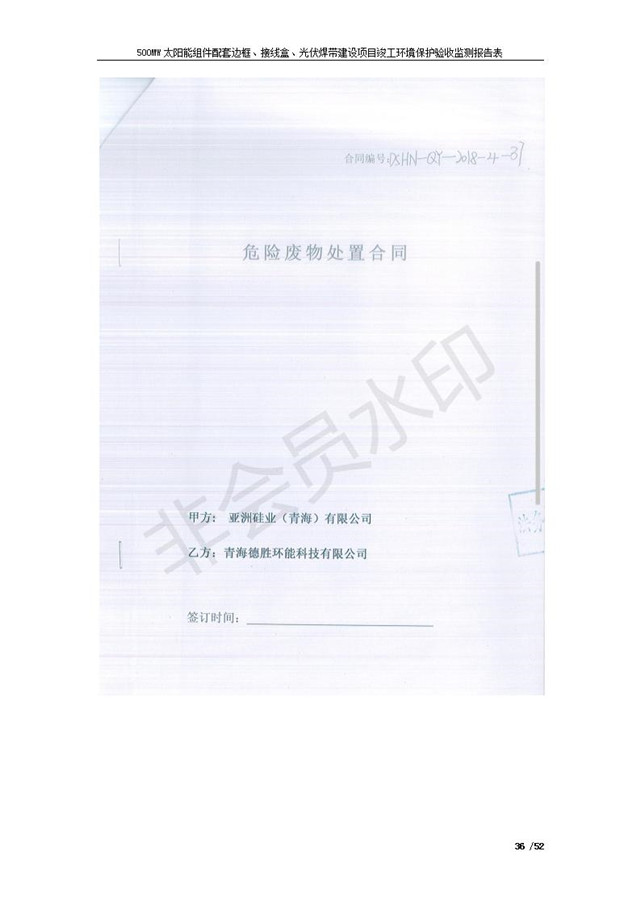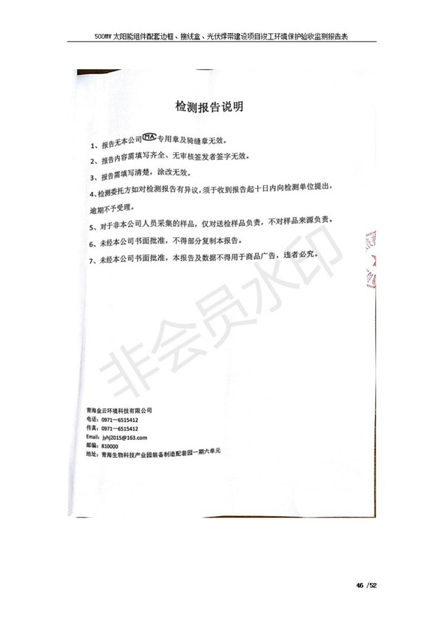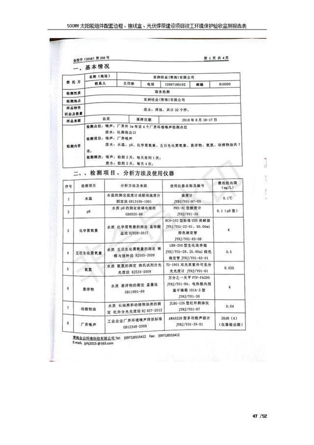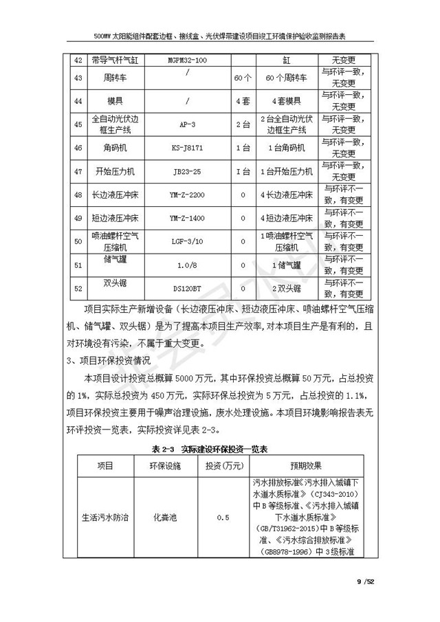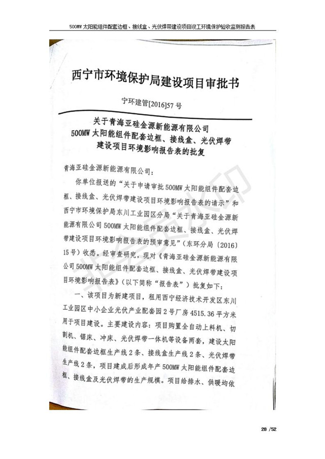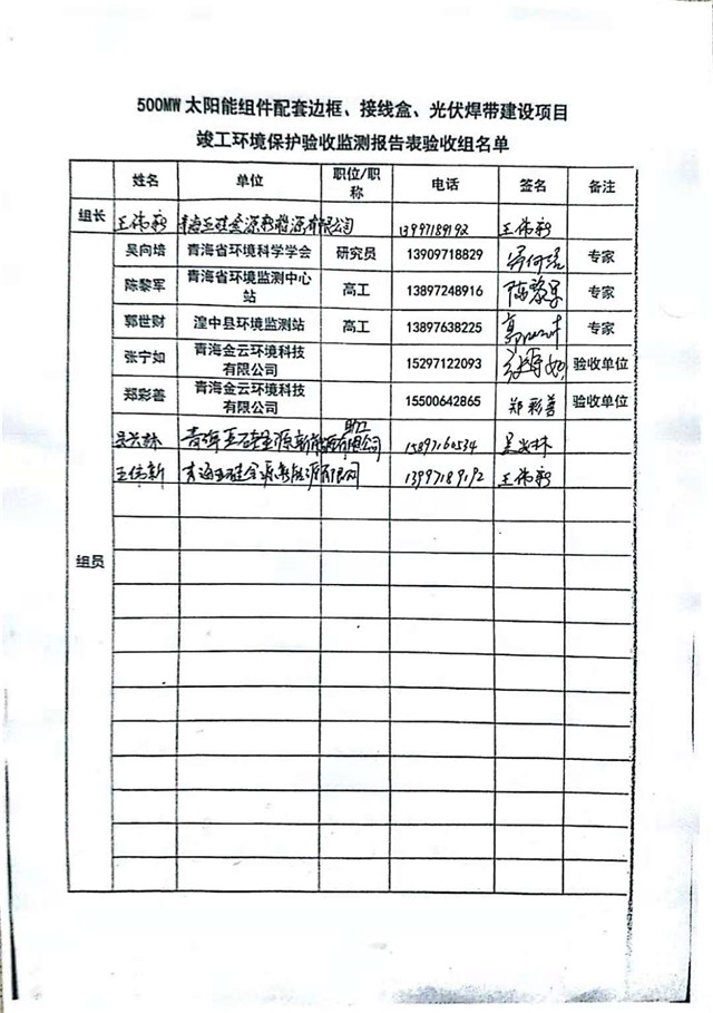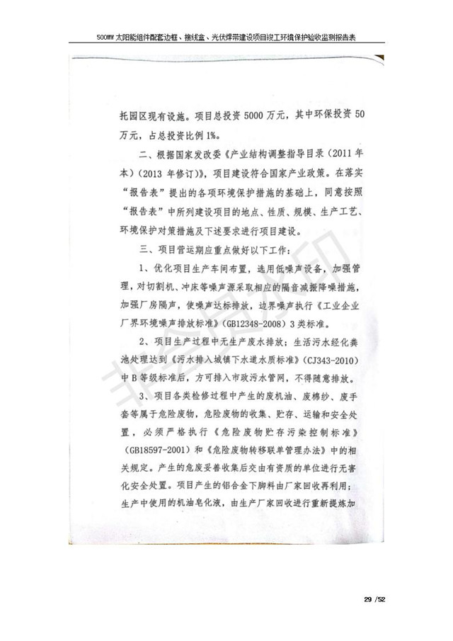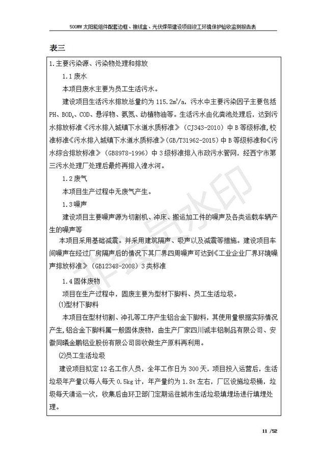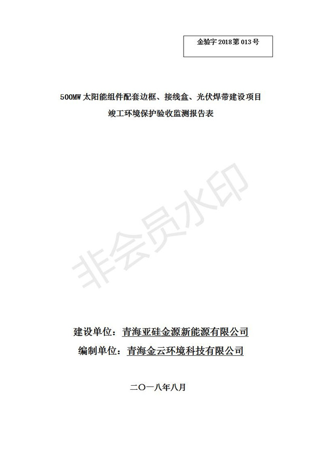 500MW太陽能組件配套邊框、接線盒、光伏焊帶建設(shè)項(xiàng)目竣工環(huán)境保護(hù)驗(yàn)收監(jiān)測報(bào)告表公示