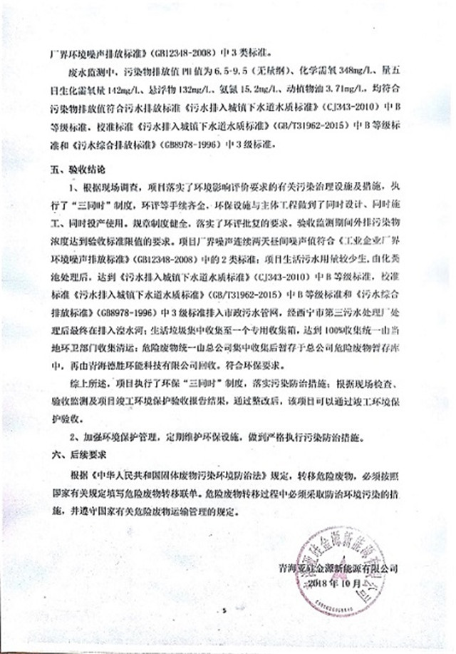 根據(jù)中華人民共和國國務(wù)院令第253號(hào)《建設(shè)項(xiàng)目環(huán)境保護(hù)管理?xiàng)l例》(中華人民共和國國務(wù)院令第682號(hào)《國務(wù)院關(guān)于修改〈建設(shè)項(xiàng)目環(huán)境保護(hù)管理?xiàng)l例〉的決定》和《建設(shè)項(xiàng)目竣工環(huán)境保護(hù)驗(yàn)收暫行辦法》,嚴(yán)格依照有關(guān)法律法規(guī),建設(shè)項(xiàng)目環(huán)境保護(hù)設(shè)施驗(yàn)收技術(shù)規(guī)范,本項(xiàng)目環(huán)評(píng)報(bào)告表和環(huán)保審批部門審批意見以及企業(yè)自行驗(yàn)收相關(guān)要求等對本項(xiàng)目進(jìn)行驗(yàn)收,本項(xiàng)目符合環(huán)保驗(yàn)收條件,可以通過環(huán)保驗(yàn)收。 現(xiàn)將本項(xiàng)目竣工環(huán)境保護(hù)驗(yàn)收情況進(jìn)行公開,并征求公眾意見。一、征求意見日期:自公示之日起20個(gè)工作日 二、征求意見期間,驗(yàn)收組接受反映公示的建設(shè)項(xiàng)目竣工環(huán)境保護(hù)驗(yàn)收情況和問題的來信、來訪和來電。 三、聯(lián)系方式 聯(lián)系人:張工 電 話:15297122093 通訊地址:青海省西寧市城北區(qū)經(jīng)四路創(chuàng)新創(chuàng)業(yè)大廈22號(hào)