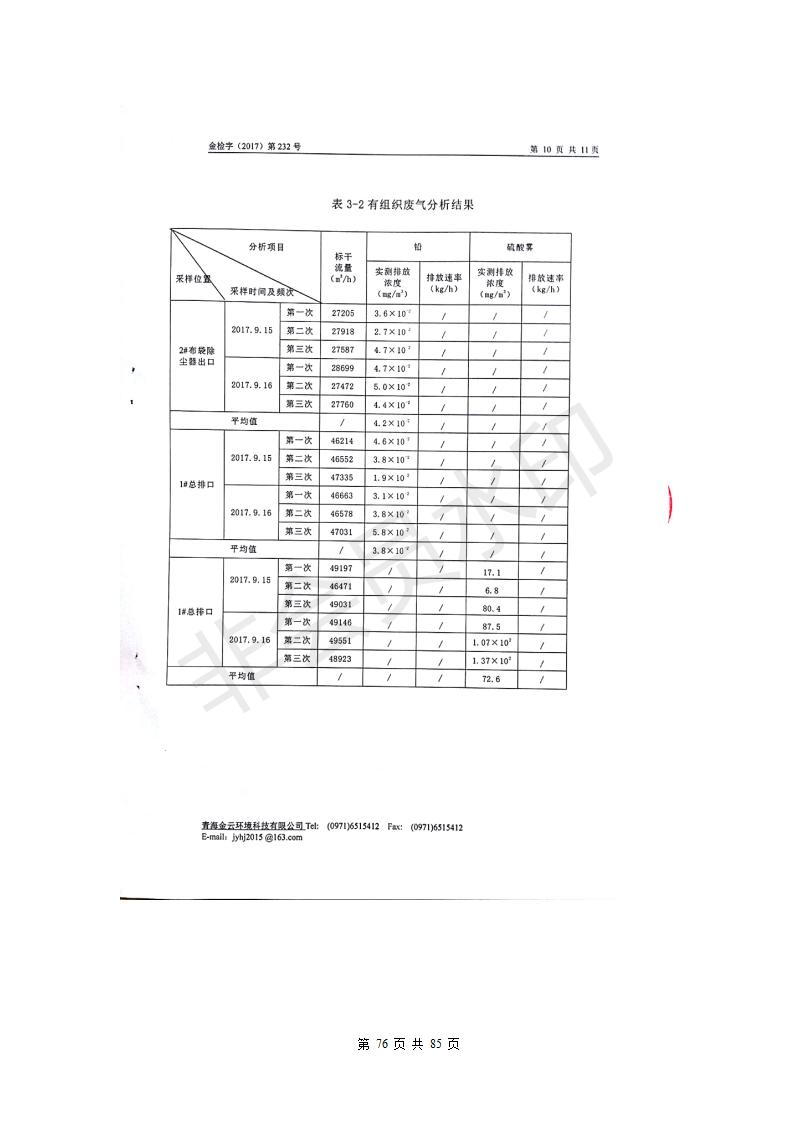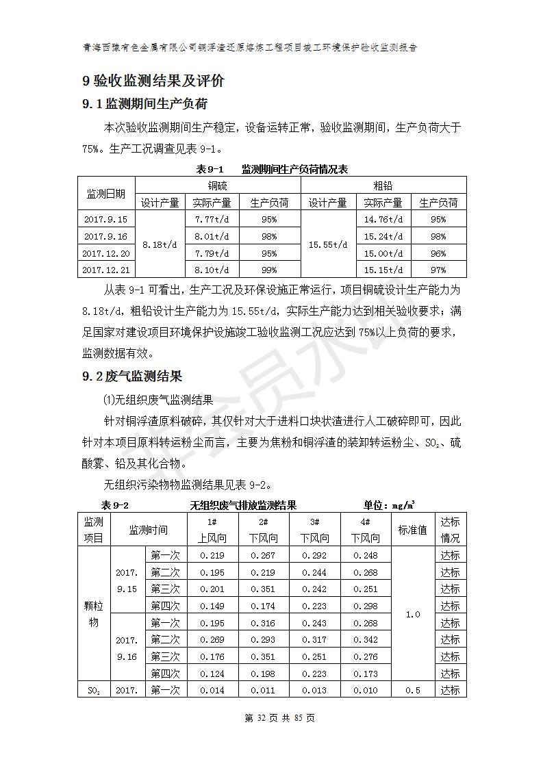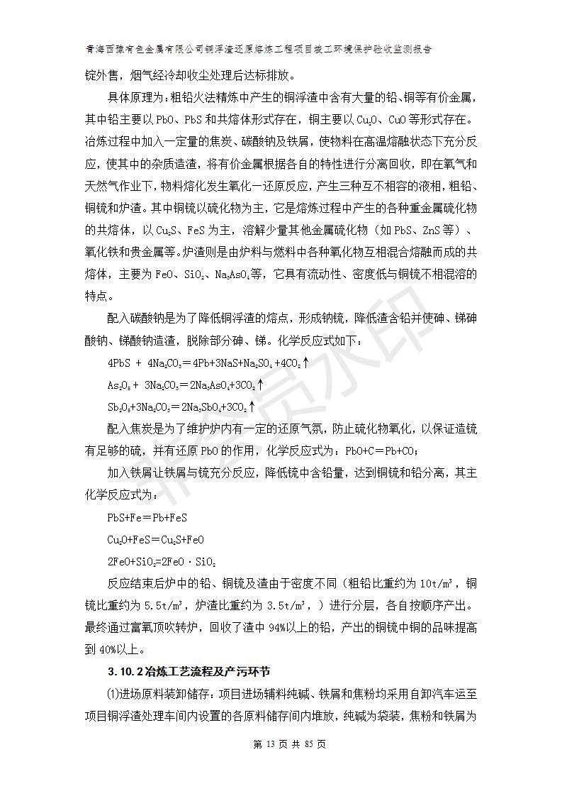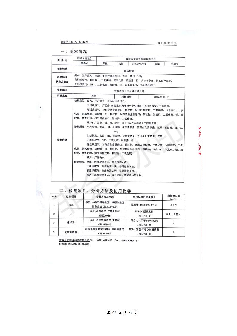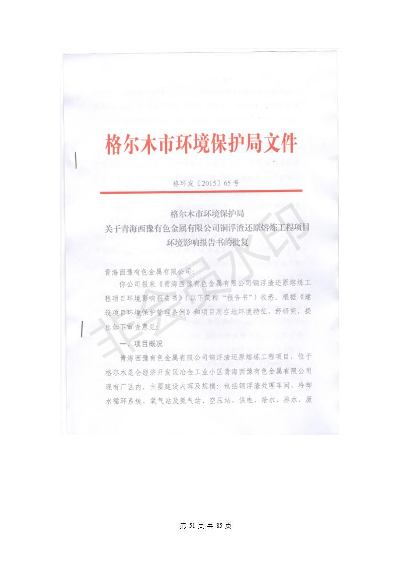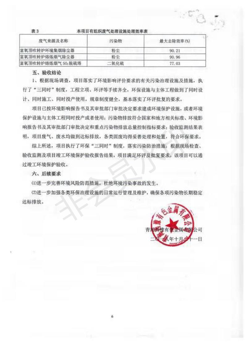青海西豫有色金屬有限公司銅浮渣還原熔煉工程項(xiàng)目竣工環(huán)境保護(hù)驗(yàn)收監(jiān)測(cè)報(bào)告公示發(fā)布日期:(2018-11-23) 點(diǎn)擊次數(shù):2784 |