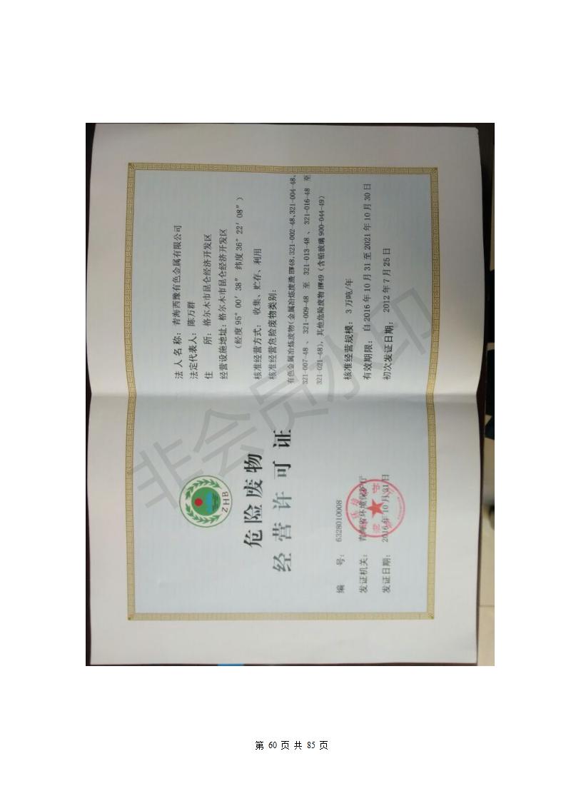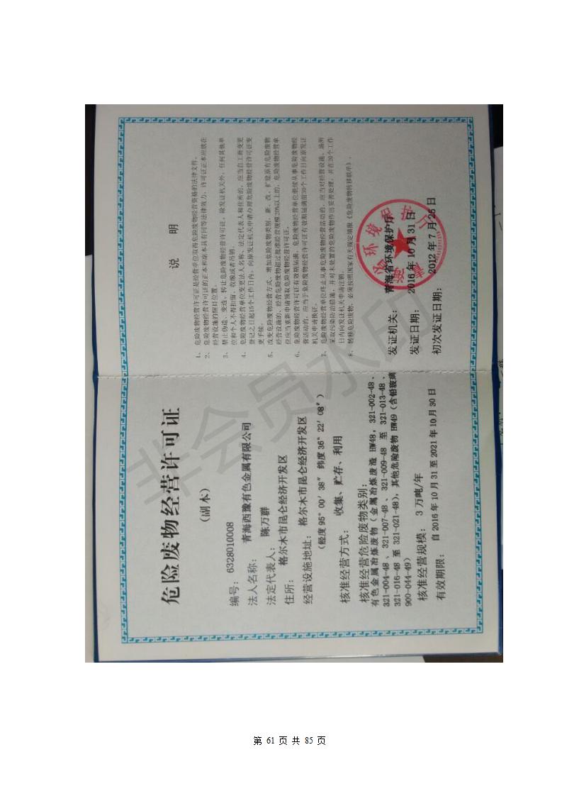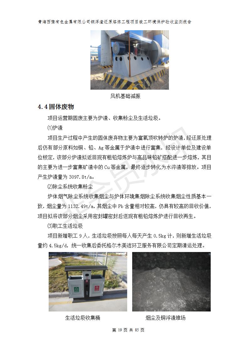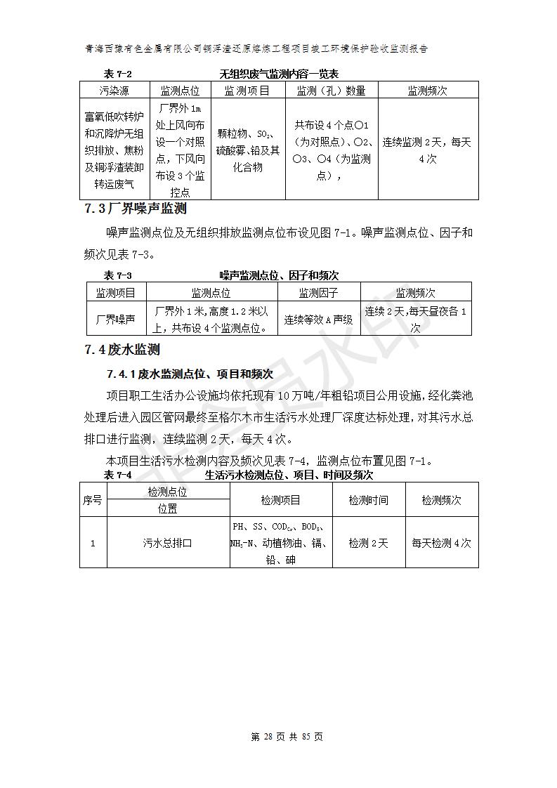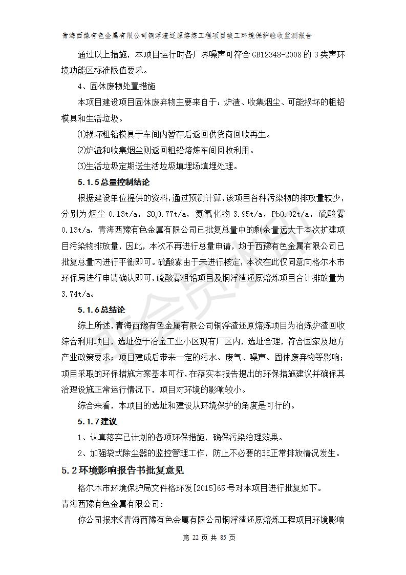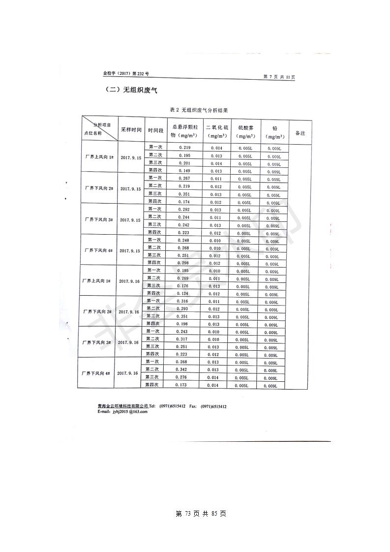 青海西豫有色金屬有限公司銅浮渣還原熔煉工程項(xiàng)目竣工環(huán)境保護(hù)驗(yàn)收監(jiān)測(cè)報(bào)告公示發(fā)布日期:(2018-11-23) 點(diǎn)擊次數(shù):2784 |
