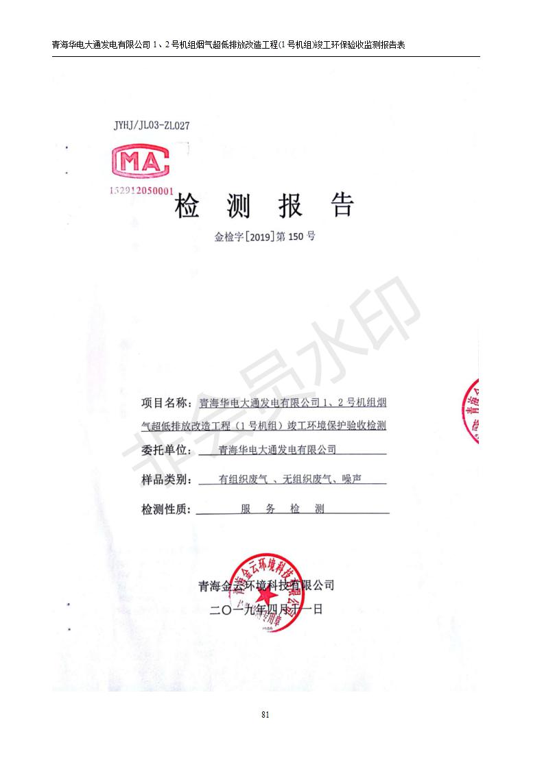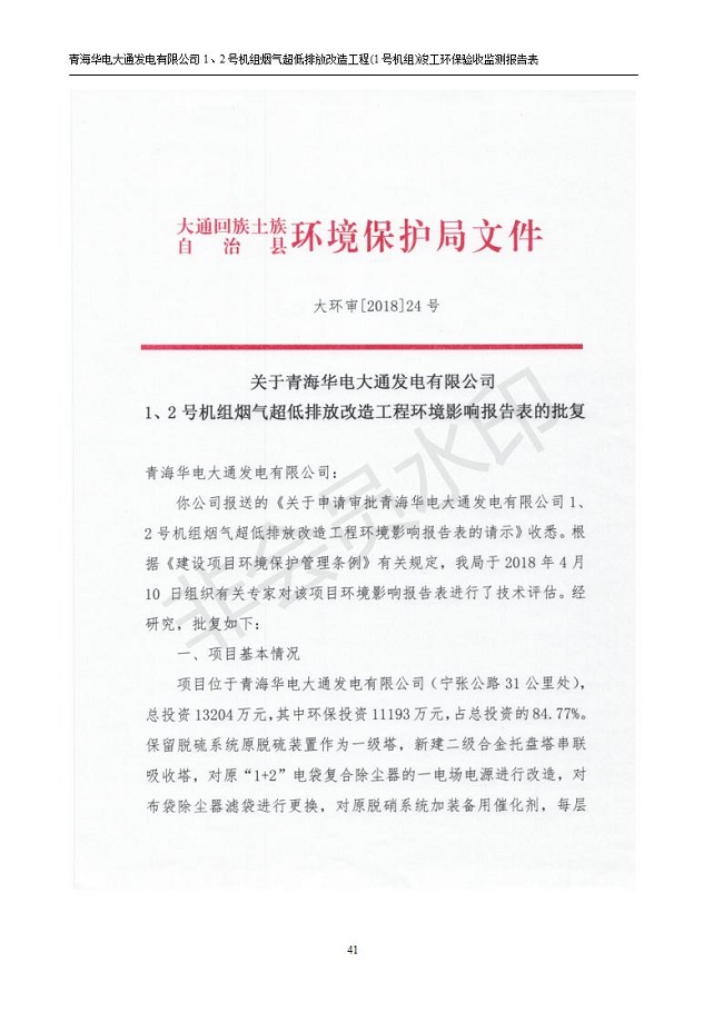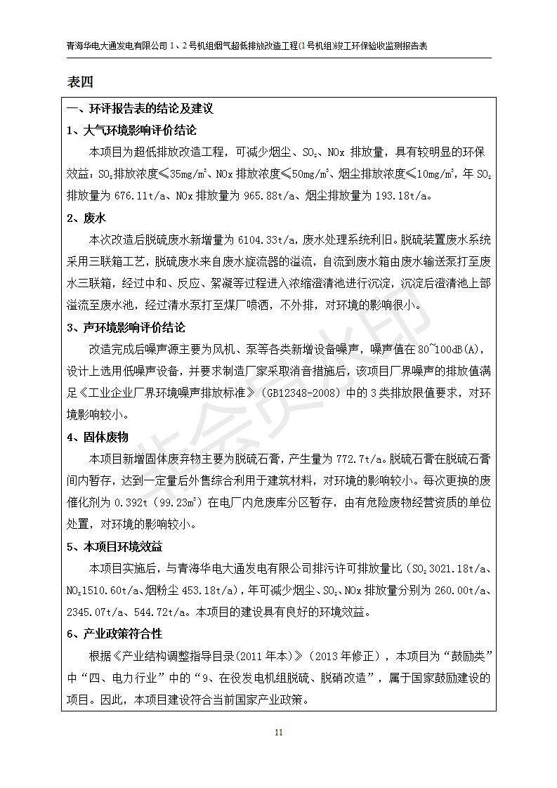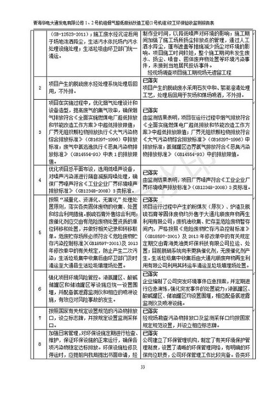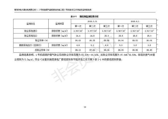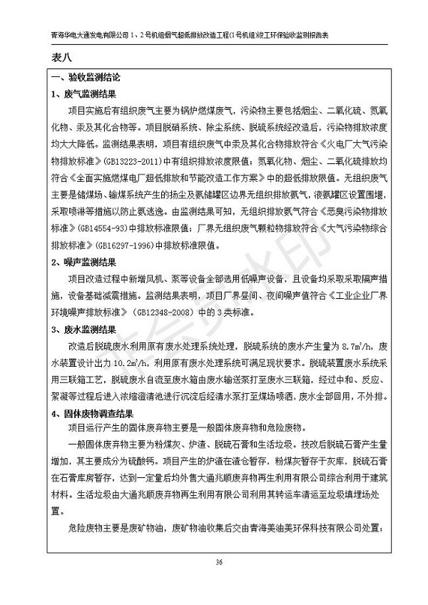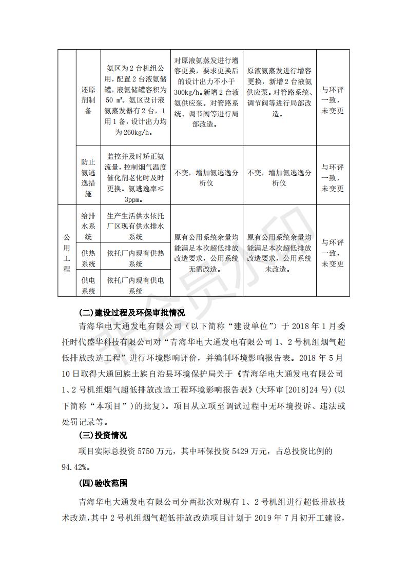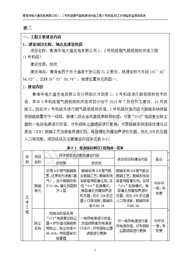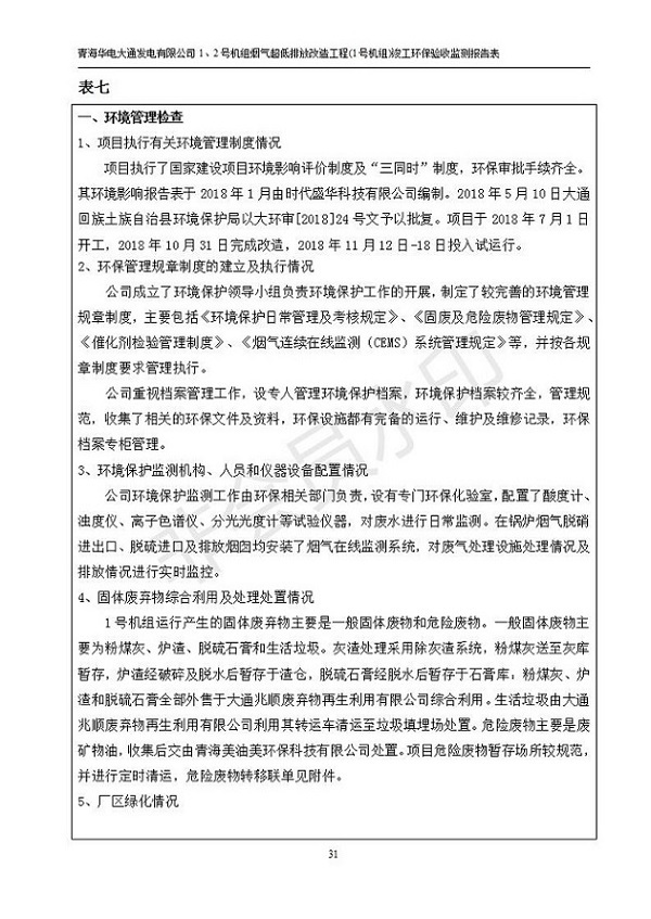根據(jù)中華人民共和國(guó)國(guó)務(wù)院令第682號(hào)《國(guó)務(wù)院關(guān)于修改〈建設(shè)項(xiàng)目環(huán)境保護(hù)管理?xiàng)l例〉的決定》和《建設(shè)項(xiàng)目竣工環(huán)境保護(hù)驗(yàn)收暫行辦法》(國(guó)務(wù)院令682號(hào)),青海華電大通發(fā)電有限公司1、2號(hào)機(jī)組煙氣超低排放改造工程(1號(hào)機(jī)組) (包括竣工環(huán)境保護(hù)驗(yàn)收監(jiān)測(cè)報(bào)告表和驗(yàn)收意見(jiàn))公示如下。 一、項(xiàng)目名稱(chēng):青海華電大通發(fā)電有限公司1、2號(hào)機(jī)組煙氣超低排放改造工程(1號(hào)機(jī)組) 竣工環(huán)境保護(hù)驗(yàn)收監(jiān)測(cè)報(bào)告表 二、地點(diǎn):青海省西寧市大通縣寧張公路31公里處 三、建設(shè)單位:青海華電大通發(fā)電有限公司 四、建設(shè)內(nèi)容:1號(hào)機(jī)組煙氣超低排放改造,1號(hào)機(jī)組改造內(nèi)容為脫硫系統(tǒng)保留原脫硫裝置作為一級(jí)塔,新建二級(jí)合金托盤(pán)塔串聯(lián)吸收塔;對(duì)原“1+2”電袋復(fù)合除塵器的一電場(chǎng)電源進(jìn)行改造,對(duì)布袋除塵器濾袋進(jìn)行更換;對(duì)原脫硝系統(tǒng)選擇性催化還原法(SCR)脫硝工藝加裝備用催化劑,每層催化劑增加聲波吹灰器,優(yōu)化SCR反應(yīng)器入口導(dǎo)流板。 五、聯(lián)系人:張工 六、聯(lián)系電 話(huà):0971-6515411 七、公示時(shí)間:二〇一九年二月十三日至二〇一九年三月十二日 公示期間,對(duì)上述公示內(nèi)容如有異議,請(qǐng)以書(shū)面形式反饋,個(gè)人須署真實(shí)姓名,單位須加蓋公章。