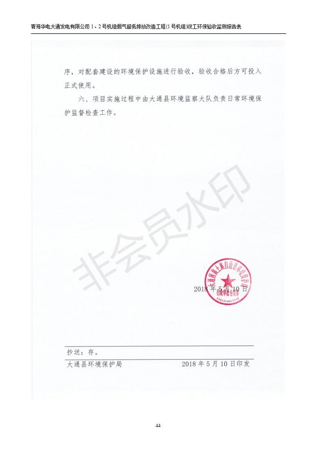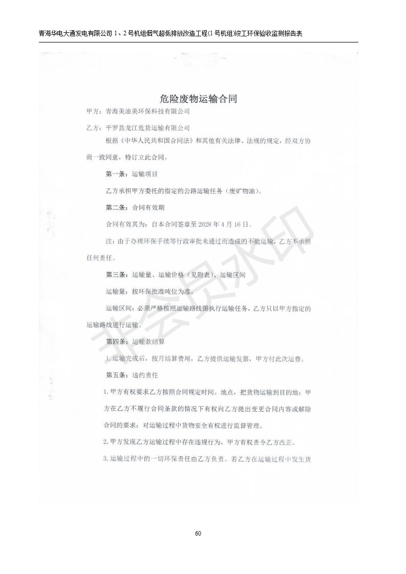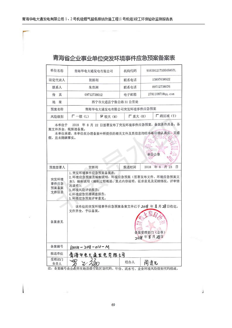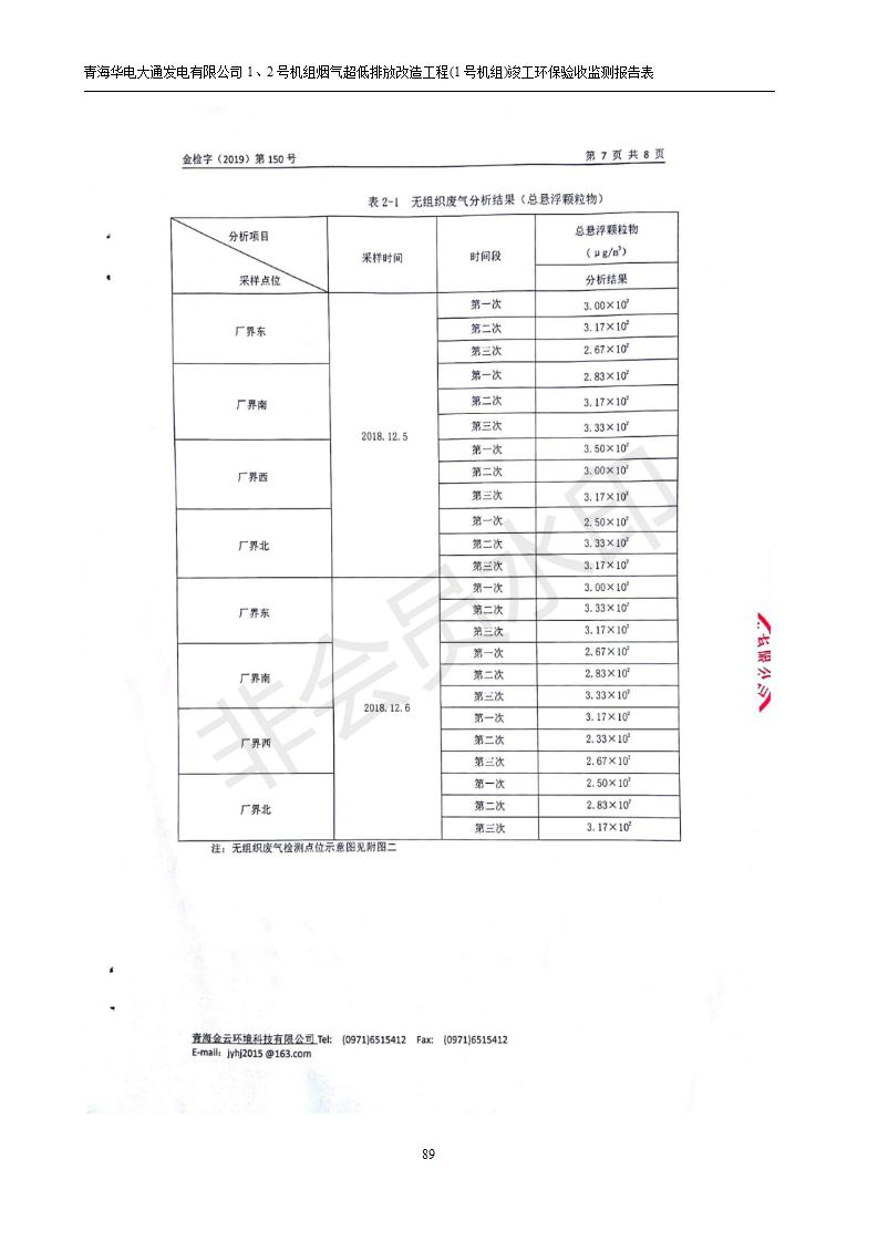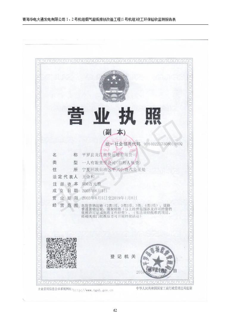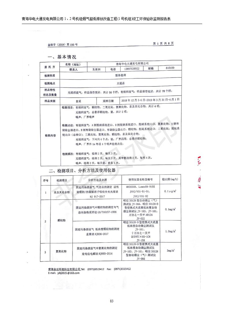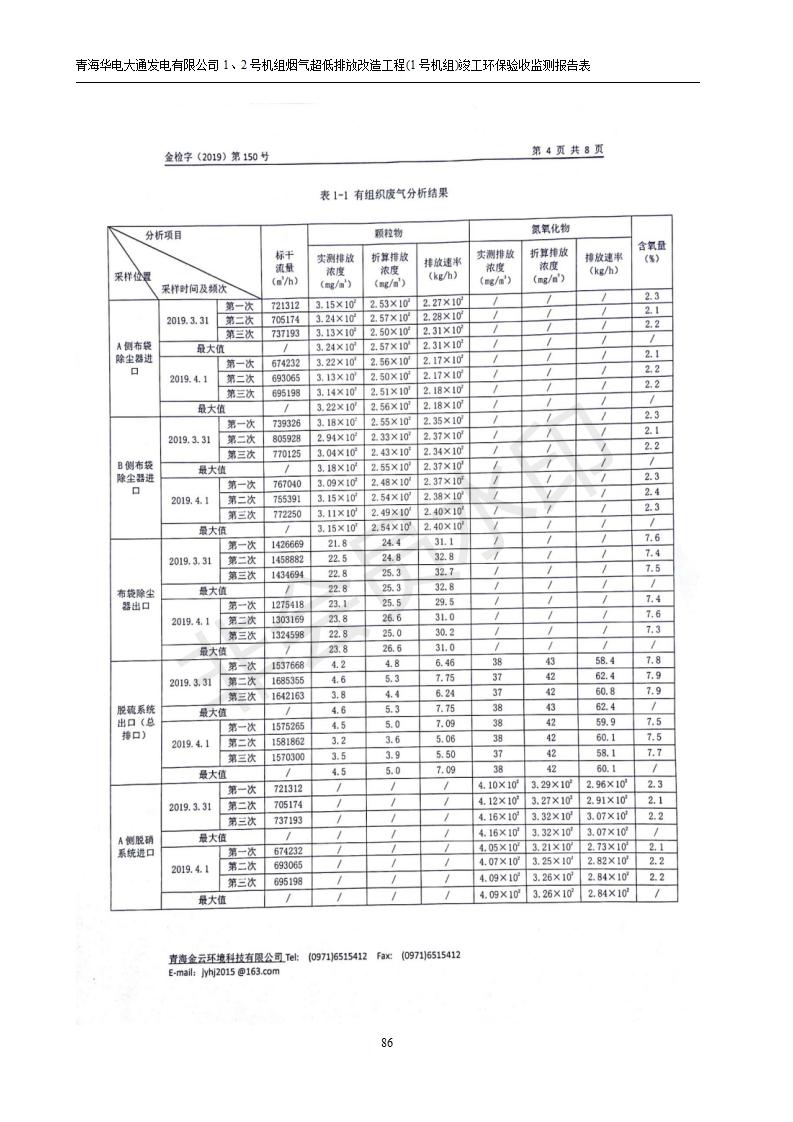 根據(jù)中華人民共和國(guó)國(guó)務(wù)院令第682號(hào)《國(guó)務(wù)院關(guān)于修改〈建設(shè)項(xiàng)目環(huán)境保護(hù)管理?xiàng)l例〉的決定》和《建設(shè)項(xiàng)目竣工環(huán)境保護(hù)驗(yàn)收暫行辦法》(國(guó)務(wù)院令682號(hào)),青海華電大通發(fā)電有限公司1、2號(hào)機(jī)組煙氣超低排放改造工程(1號(hào)機(jī)組) (包括竣工環(huán)境保護(hù)驗(yàn)收監(jiān)測(cè)報(bào)告表和驗(yàn)收意見(jiàn))公示如下。 一、項(xiàng)目名稱(chēng):青海華電大通發(fā)電有限公司1、2號(hào)機(jī)組煙氣超低排放改造工程(1號(hào)機(jī)組) 竣工環(huán)境保護(hù)驗(yàn)收監(jiān)測(cè)報(bào)告表 二、地點(diǎn):青海省西寧市大通縣寧張公路31公里處 三、建設(shè)單位:青海華電大通發(fā)電有限公司 四、建設(shè)內(nèi)容:1號(hào)機(jī)組煙氣超低排放改造,1號(hào)機(jī)組改造內(nèi)容為脫硫系統(tǒng)保留原脫硫裝置作為一級(jí)塔,新建二級(jí)合金托盤(pán)塔串聯(lián)吸收塔;對(duì)原“1+2”電袋復(fù)合除塵器的一電場(chǎng)電源進(jìn)行改造,對(duì)布袋除塵器濾袋進(jìn)行更換;對(duì)原脫硝系統(tǒng)選擇性催化還原法(SCR)脫硝工藝加裝備用催化劑,每層催化劑增加聲波吹灰器,優(yōu)化SCR反應(yīng)器入口導(dǎo)流板。 五、聯(lián)系人:張工 六、聯(lián)系電 話(huà):0971-6515411 七、公示時(shí)間:二〇一九年二月十三日至二〇一九年三月十二日 公示期間,對(duì)上述公示內(nèi)容如有異議,請(qǐng)以書(shū)面形式反饋,個(gè)人須署真實(shí)姓名,單位須加蓋公章。