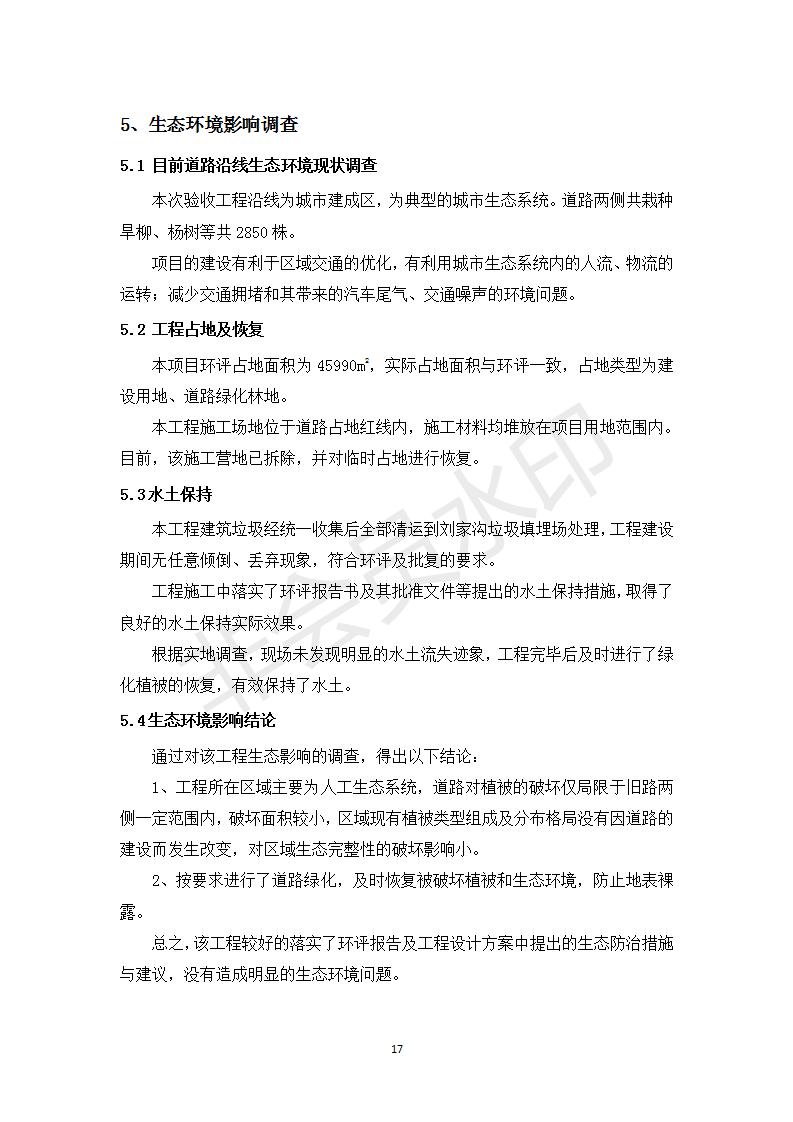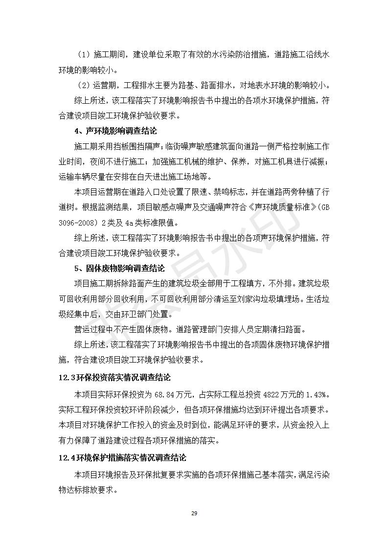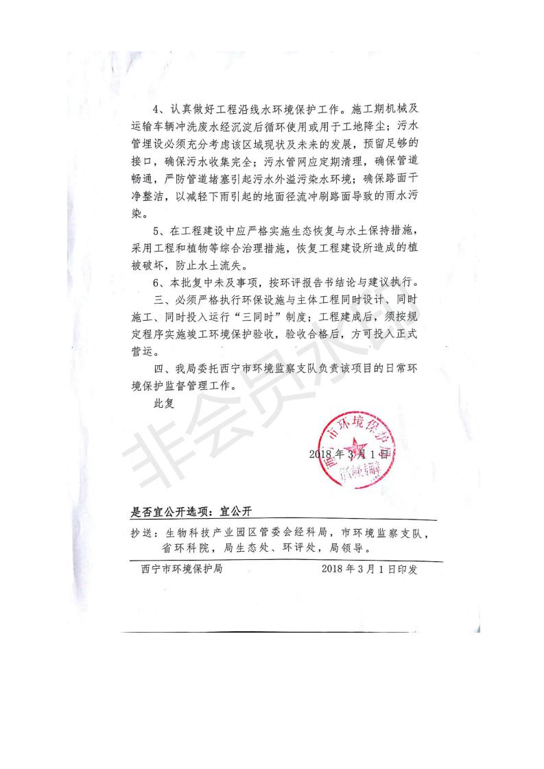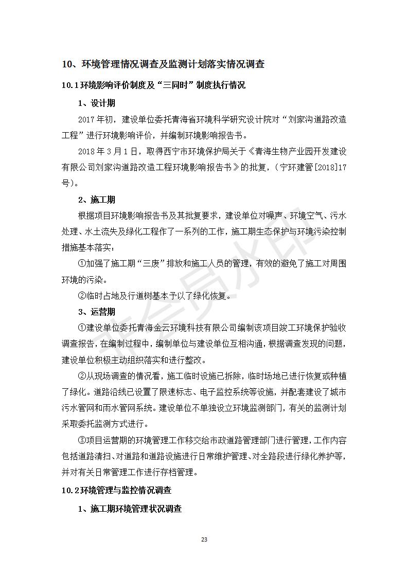 根據(jù)中華人民共和國務(wù)院令第682號(hào)《國務(wù)院關(guān)于修改〈建設(shè)項(xiàng)目環(huán)境保護(hù)管理?xiàng)l例〉的決定》和《建設(shè)項(xiàng)目竣工環(huán)境保護(hù)驗(yàn)收暫行辦法》(國務(wù)院令682號(hào)),劉家溝道路改造工程竣工環(huán)境保護(hù)驗(yàn)收內(nèi)容(包括竣工環(huán)境保護(hù)驗(yàn)收調(diào)查報(bào)告和驗(yàn)收意見)公示如下: 一、項(xiàng)目名稱:劉家溝道路改造工程 二、地點(diǎn):青海省西寧市城北區(qū)生物園區(qū) 三、建設(shè)單位:生物產(chǎn)業(yè)園開發(fā)建設(shè)有限公司 四、建設(shè)內(nèi)容:劉家溝道路經(jīng)改造后全長1533m,道路呈東西向展布,道路紅線為30m。設(shè)計(jì)時(shí)速為40km/h,雙向4車道。 五、公示時(shí)間:二〇一九年三月十四日至二〇一九年四月十一日 六、聯(lián)系人:張工 公示期間,對(duì)上述公示內(nèi)容如有異議,請(qǐng)以書面形式反饋,個(gè)人須署真實(shí)姓名,單位須加蓋公章。
