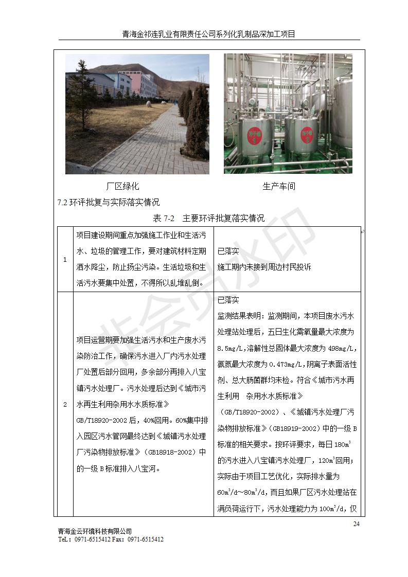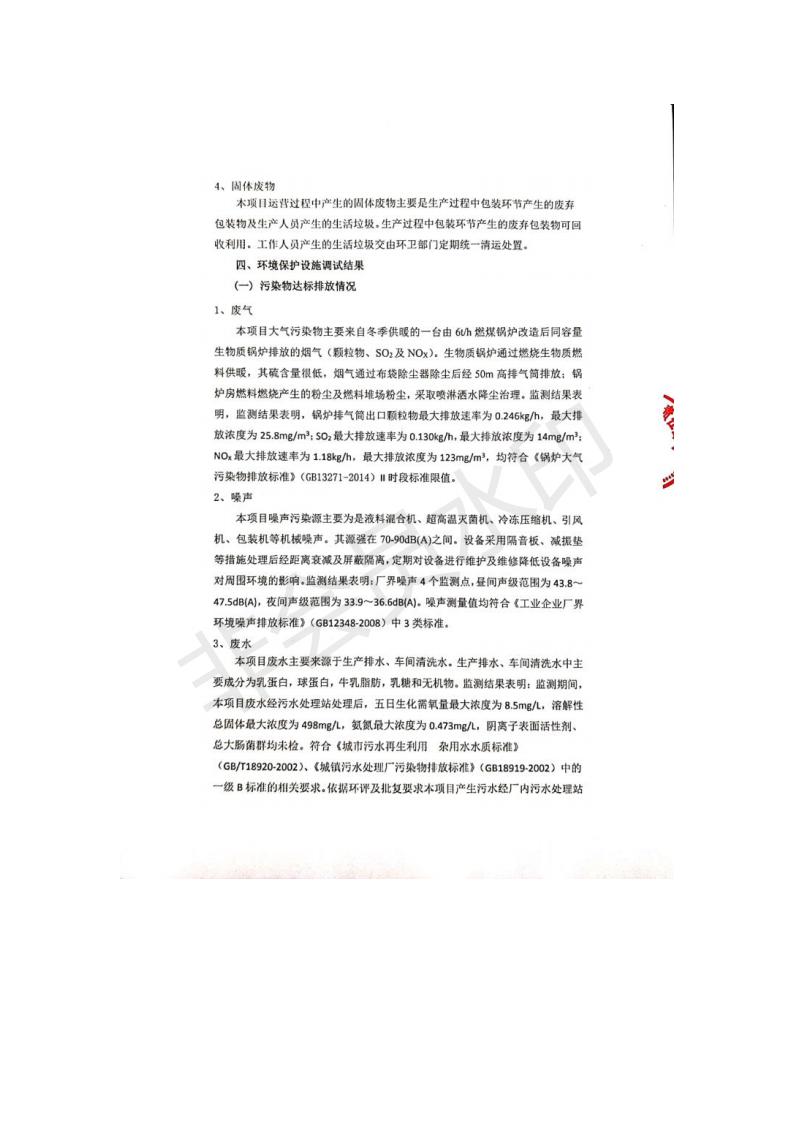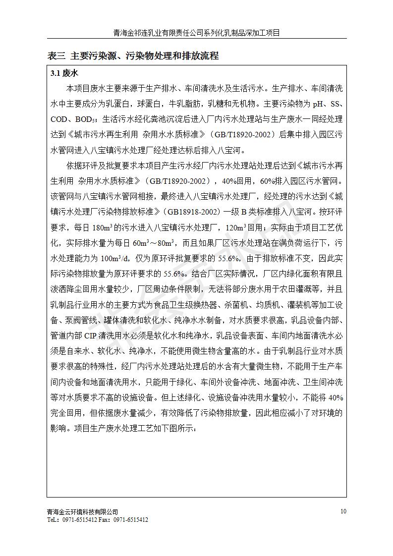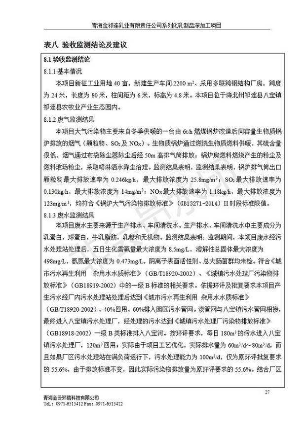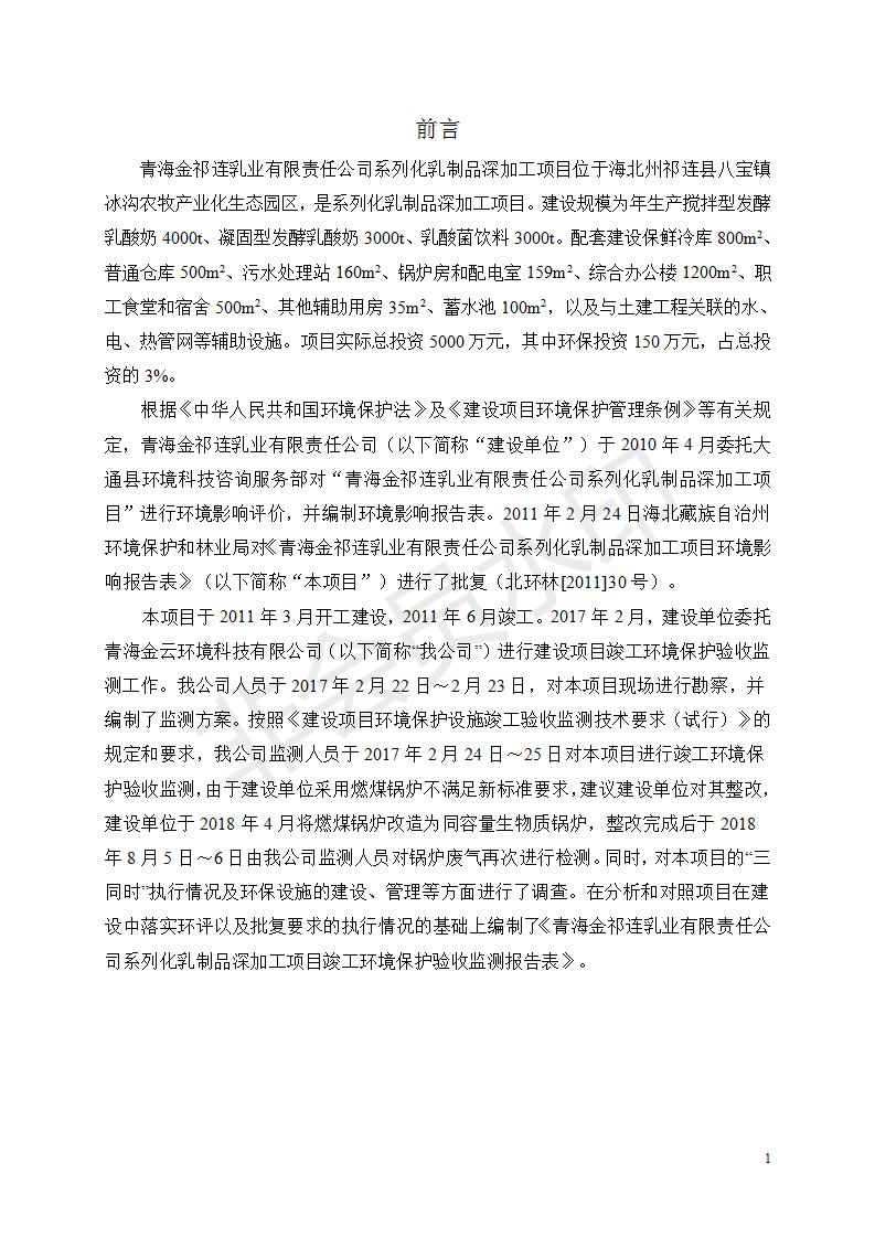 根據(jù)中華人民共和國(guó)國(guó)務(wù)院令第682號(hào)《國(guó)務(wù)院關(guān)于修改〈建設(shè)項(xiàng)目環(huán)境保護(hù)管理?xiàng)l例〉的決定》和《建設(shè)項(xiàng)目竣工環(huán)境保護(hù)驗(yàn)收暫行辦法》(國(guó)務(wù)院令682號(hào)),青海金祁連乳業(yè)有限責(zé)任公司系列化乳制品深加工項(xiàng)目(包括竣工環(huán)境保護(hù)驗(yàn)收監(jiān)測(cè)報(bào)告表和驗(yàn)收意見(jiàn))公示如下。 一、項(xiàng)目名稱(chēng):青海金祁連乳業(yè)有限責(zé)任公司系列化乳制品深加工項(xiàng)目 二、地點(diǎn):海北藏族自治州祁連縣冰溝農(nóng)牧產(chǎn)業(yè)化生態(tài)園區(qū) 三、建設(shè)單位:青海金祁連乳業(yè)有限責(zé)任公司 四、建設(shè)內(nèi)容:本項(xiàng)目新征工業(yè)用地40畝,新建生產(chǎn)車(chē)間2200 m2、采用多聯(lián)跨鋼結(jié)構(gòu)廠房,跨度為24米,長(zhǎng)度為80米,柱間距為6米,標(biāo)高為4.8米。廠房?jī)?nèi)部根據(jù)產(chǎn)品生產(chǎn)工藝及工序要求分為不同的工作區(qū)域和車(chē)間辦公室。建設(shè)有保鮮冷庫(kù)800 m2、普通倉(cāng)庫(kù)500m2、污水處理站房160 m2、鍋爐房和配電室159 m2、綜合辦公樓1200 m2、職工食堂和宿舍500 m2、其他輔助用房35 m2、蓄水池100 m2以及與土建工程相關(guān)聯(lián)的水、電、熱官網(wǎng)等輔助設(shè)施。 五、聯(lián)系人:張工 六、聯(lián)系電 話(huà):0971-6515411 七、公示時(shí)間:二〇一九年七月十日至二〇一九年八月六日 公示期間,對(duì)上述公示內(nèi)容如有異議,請(qǐng)以書(shū)面形式反饋,個(gè)人須署真實(shí)姓名,單位須加蓋公章。