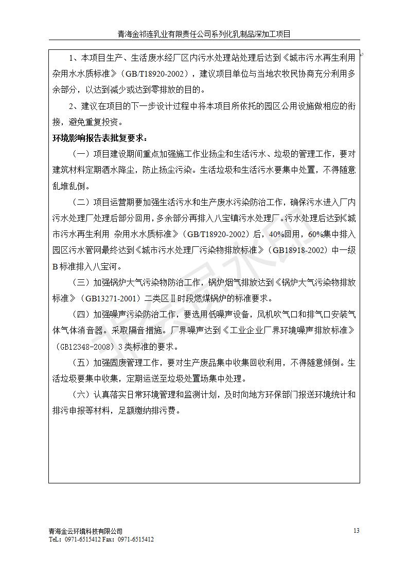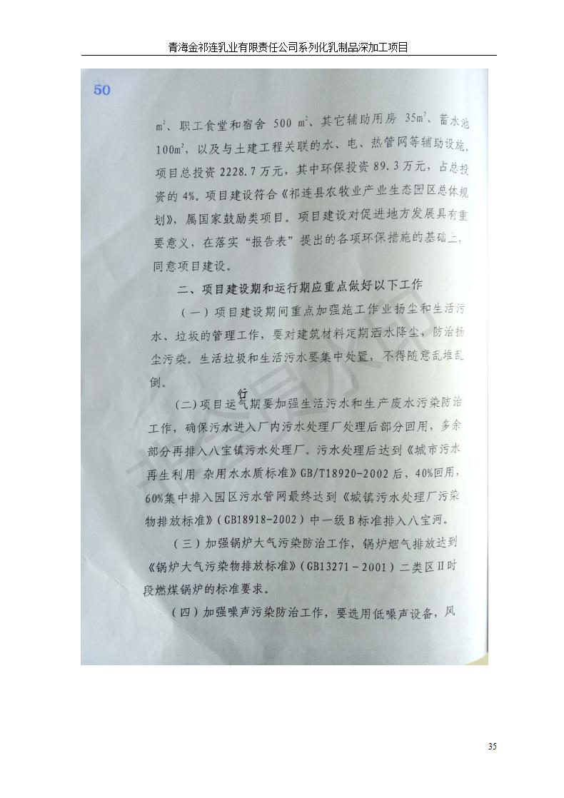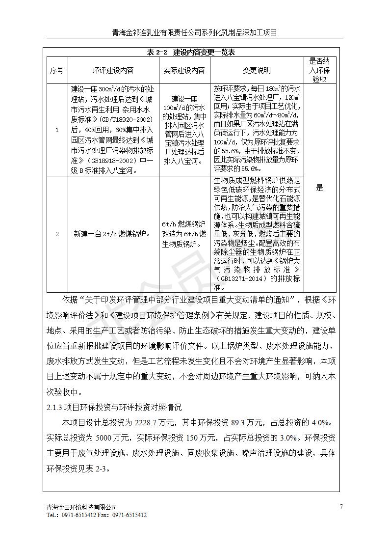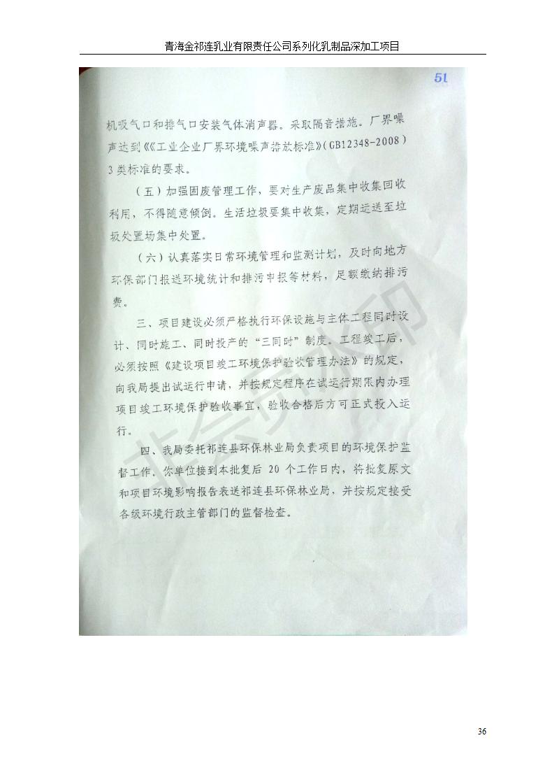 根據(jù)中華人民共和國(guó)國(guó)務(wù)院令第682號(hào)《國(guó)務(wù)院關(guān)于修改〈建設(shè)項(xiàng)目環(huán)境保護(hù)管理?xiàng)l例〉的決定》和《建設(shè)項(xiàng)目竣工環(huán)境保護(hù)驗(yàn)收暫行辦法》(國(guó)務(wù)院令682號(hào)),青海金祁連乳業(yè)有限責(zé)任公司系列化乳制品深加工項(xiàng)目(包括竣工環(huán)境保護(hù)驗(yàn)收監(jiān)測(cè)報(bào)告表和驗(yàn)收意見(jiàn))公示如下。 一、項(xiàng)目名稱(chēng):青海金祁連乳業(yè)有限責(zé)任公司系列化乳制品深加工項(xiàng)目 二、地點(diǎn):海北藏族自治州祁連縣冰溝農(nóng)牧產(chǎn)業(yè)化生態(tài)園區(qū) 三、建設(shè)單位:青海金祁連乳業(yè)有限責(zé)任公司 四、建設(shè)內(nèi)容:本項(xiàng)目新征工業(yè)用地40畝,新建生產(chǎn)車(chē)間2200 m2、采用多聯(lián)跨鋼結(jié)構(gòu)廠房,跨度為24米,長(zhǎng)度為80米,柱間距為6米,標(biāo)高為4.8米。廠房?jī)?nèi)部根據(jù)產(chǎn)品生產(chǎn)工藝及工序要求分為不同的工作區(qū)域和車(chē)間辦公室。建設(shè)有保鮮冷庫(kù)800 m2、普通倉(cāng)庫(kù)500m2、污水處理站房160 m2、鍋爐房和配電室159 m2、綜合辦公樓1200 m2、職工食堂和宿舍500 m2、其他輔助用房35 m2、蓄水池100 m2以及與土建工程相關(guān)聯(lián)的水、電、熱官網(wǎng)等輔助設(shè)施。 五、聯(lián)系人:張工 六、聯(lián)系電 話(huà):0971-6515411 七、公示時(shí)間:二〇一九年七月十日至二〇一九年八月六日 公示期間,對(duì)上述公示內(nèi)容如有異議,請(qǐng)以書(shū)面形式反饋,個(gè)人須署真實(shí)姓名,單位須加蓋公章。