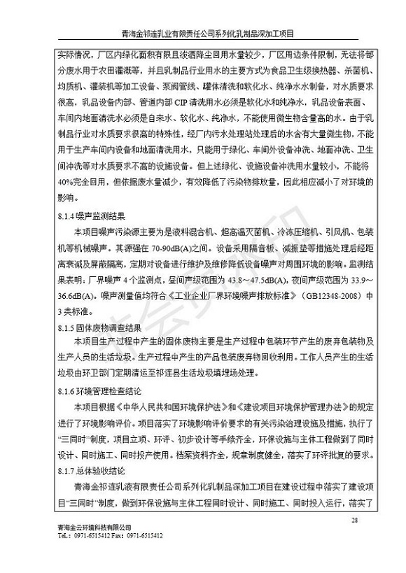 青海金祁連乳業(yè)有限責(zé)任公司系列化乳制品深加工項(xiàng)目竣工環(huán)境保護(hù)驗(yàn)收監(jiān)測(cè)報(bào)告表公示發(fā)布日期:(2019-7-10) 點(diǎn)擊次數(shù):2412 |