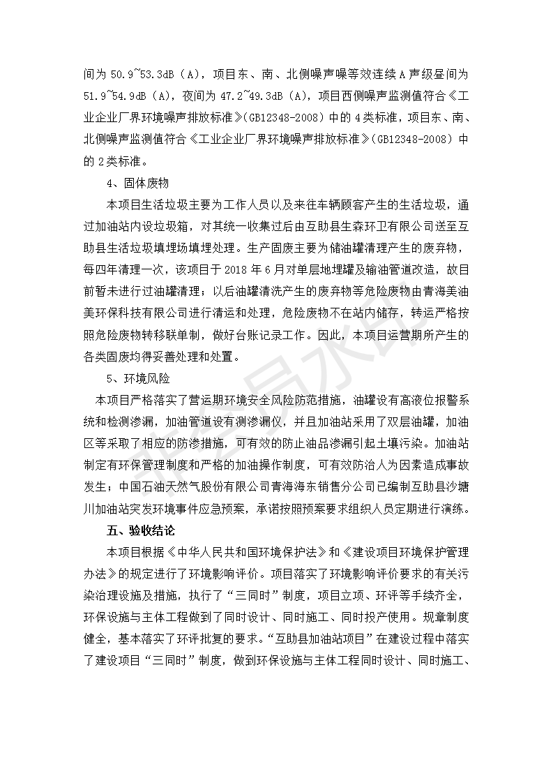 | 上一篇:互助縣東環(huán)路加油站改建項(xiàng)目竣工環(huán)境保護(hù)驗(yàn)收監(jiān)測報告表公示 | 下一篇:食品生產(chǎn)加工配送服務(wù)體系建設(shè)項(xiàng)目 竣工環(huán)境保護(hù)驗(yàn)收監(jiān)測報告表公示 |