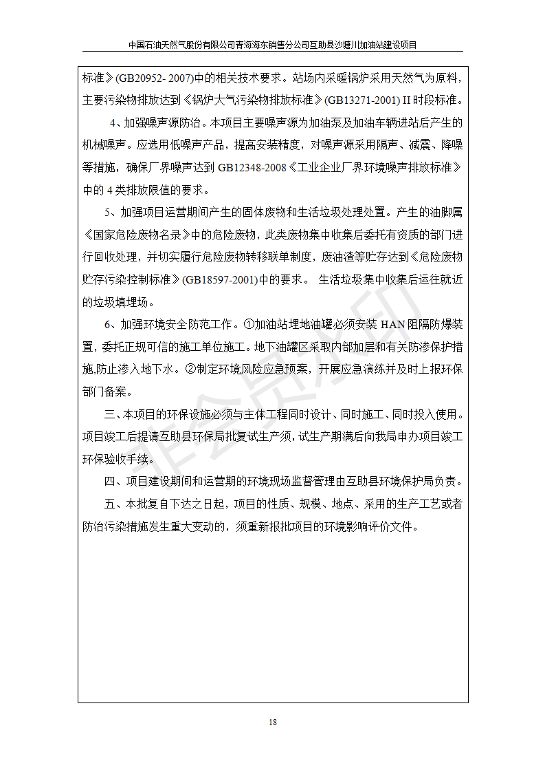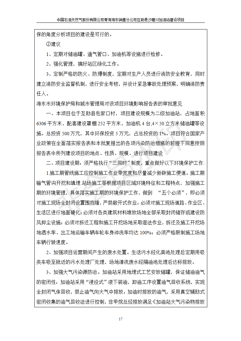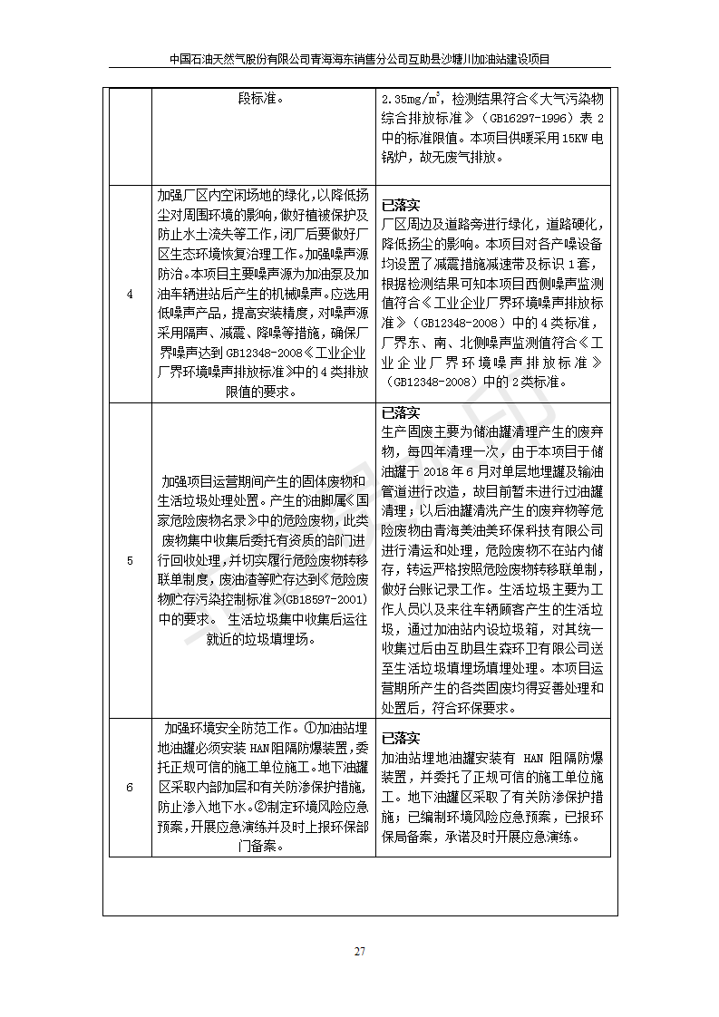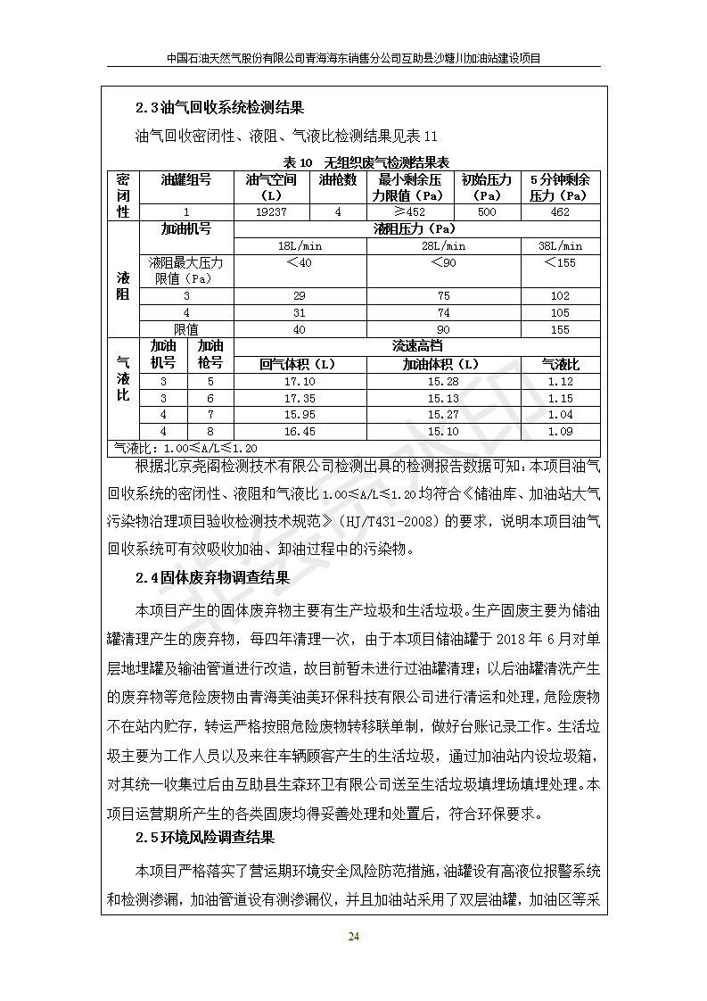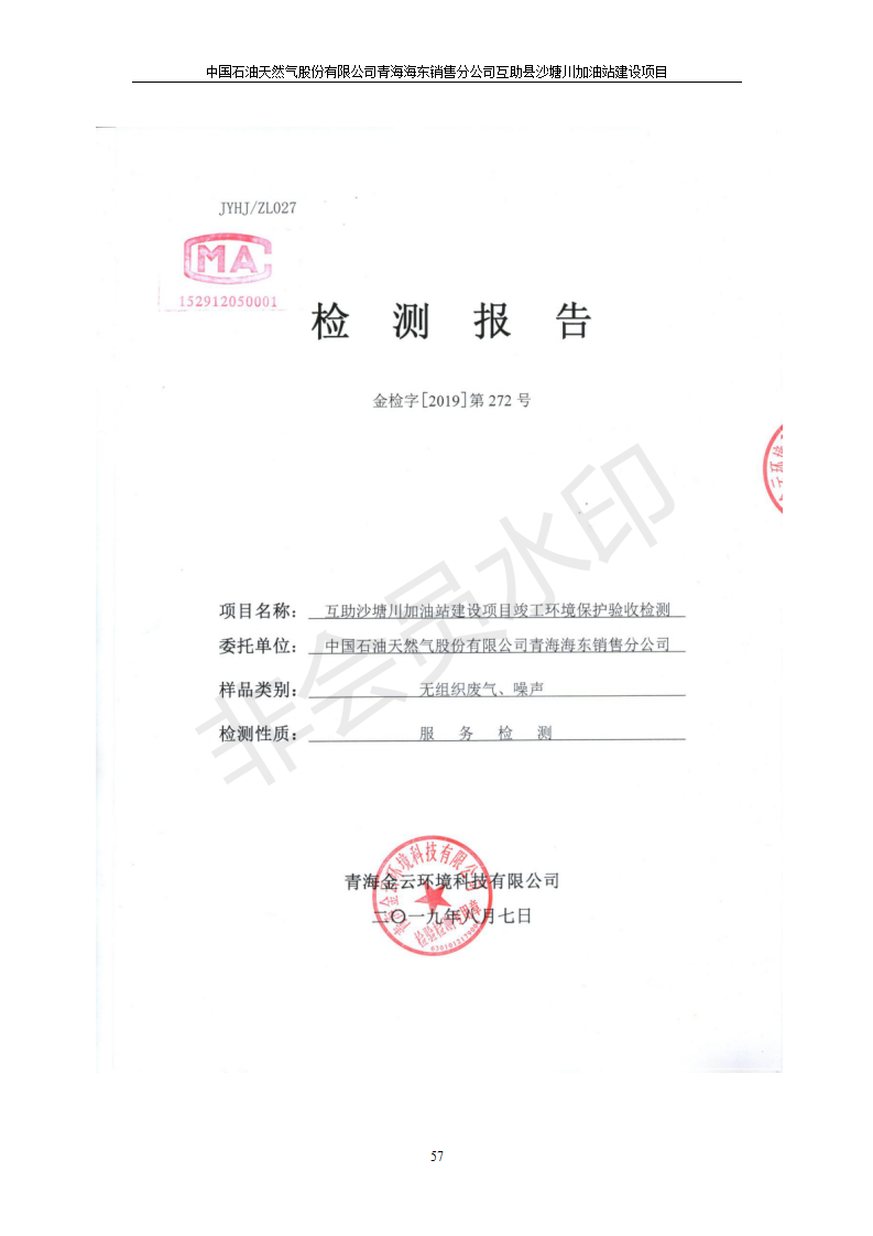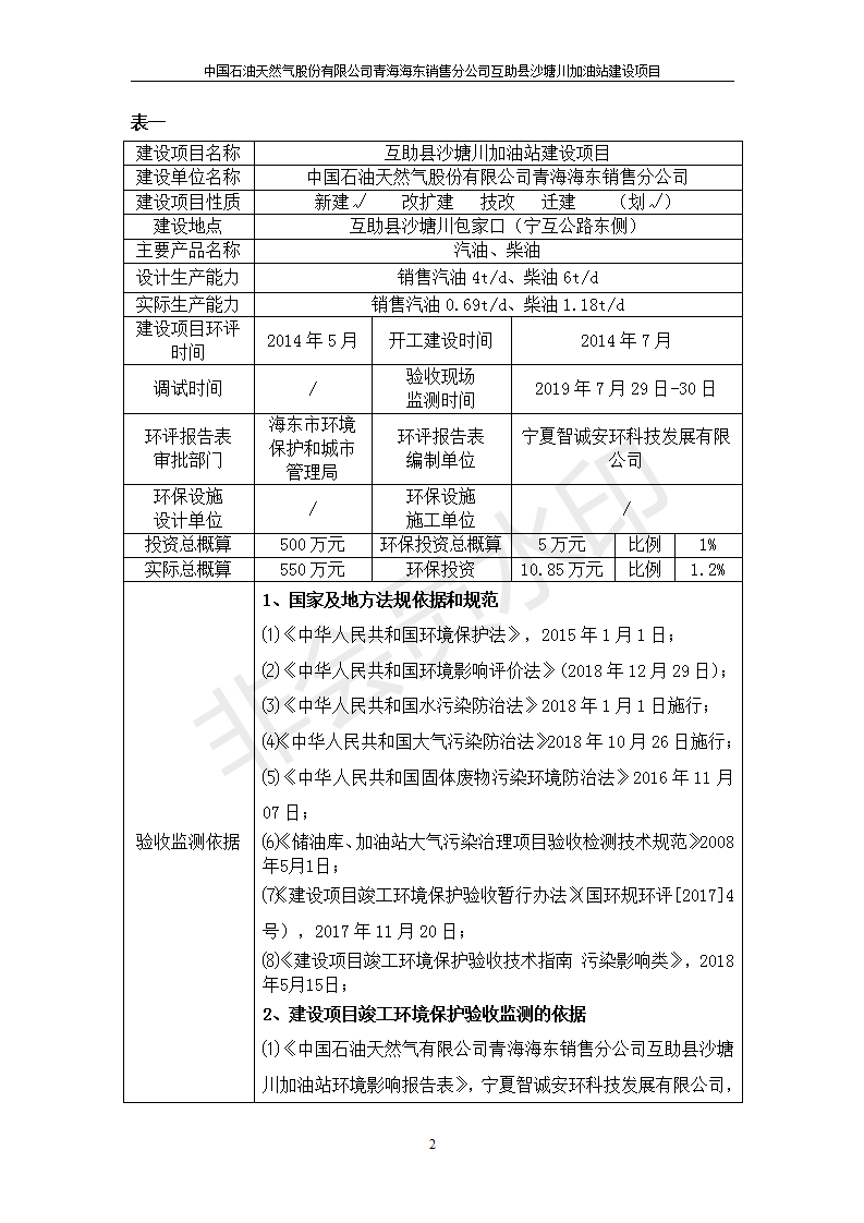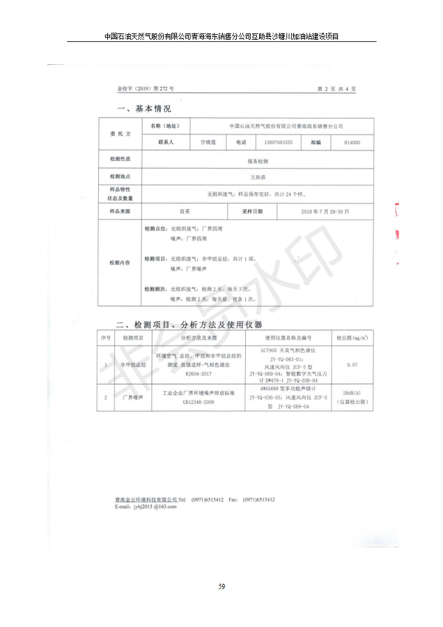 互助縣沙塘川加油站建設(shè)項(xiàng)目竣工環(huán)境保護(hù)驗(yàn)收監(jiān)測報告表發(fā)布日期:(2019-9-27) 點(diǎn)擊次數(shù):2357 |