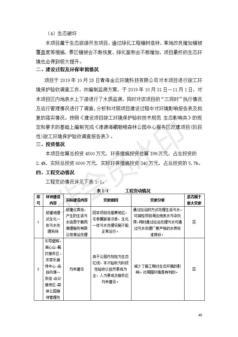 湟源海藏咽喉森林公園中心服務(wù)區(qū)改建項(xiàng)目(階段性)竣工環(huán)境保護(hù)驗(yàn)收調(diào)查表發(fā)布日期:(2020-4-29) 點(diǎn)擊次數(shù):3253 |