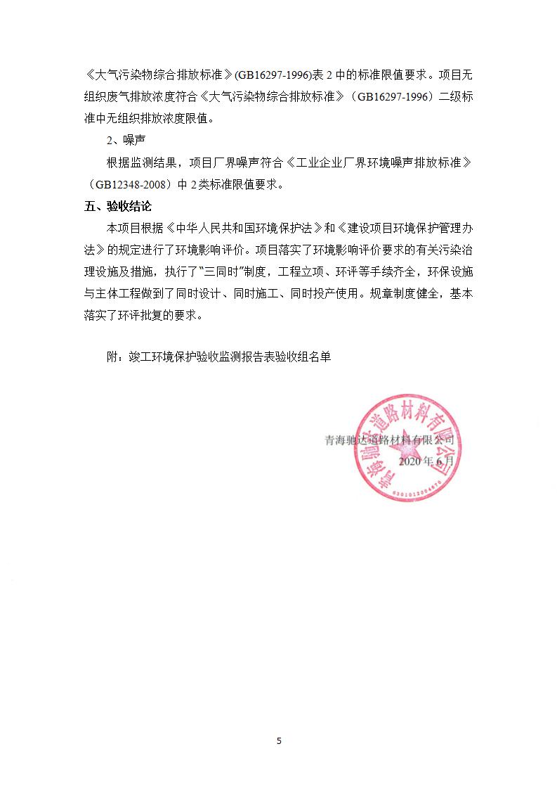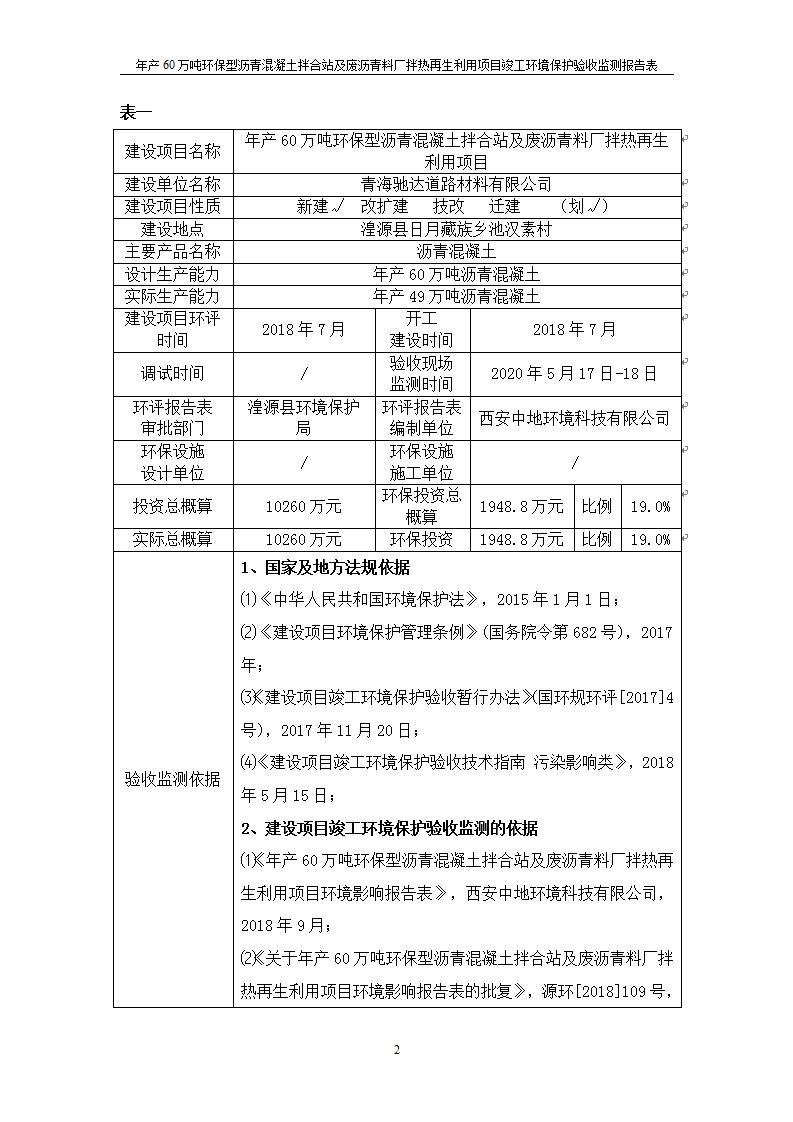 根據(jù)中華人民共和國(guó)國(guó)務(wù)院令第682號(hào)《國(guó)務(wù)院關(guān)于修改〈建設(shè)項(xiàng)目環(huán)境保護(hù)管理?xiàng)l例〉的決定》和《建設(shè)項(xiàng)目竣工環(huán)境保護(hù)驗(yàn)收暫行辦法》(國(guó)務(wù)院令682號(hào)),青海馳達(dá)道路材料有限公司年產(chǎn)60萬(wàn)噸環(huán)保型瀝青混凝土拌合站及廢瀝青料廠拌熱再生利用項(xiàng)目竣工環(huán)境保護(hù)驗(yàn)收監(jiān)測(cè)報(bào)告表公示如下。 一、項(xiàng)目名稱:年產(chǎn)60萬(wàn)噸環(huán)保型瀝青混凝土拌合站及廢瀝青料廠拌熱再生利用項(xiàng)目竣工環(huán)境保護(hù)驗(yàn)收監(jiān)測(cè)報(bào)告表 二、地點(diǎn):湟源縣日月藏族鄉(xiāng)池漢素村 三、建設(shè)單位:青海馳達(dá)道路材料有限公司 四、建設(shè)內(nèi)容:本項(xiàng)目共有2條瀝青砼生產(chǎn)線及1條穩(wěn)定土生產(chǎn)線,配套辦公樓等。 五、聯(lián)系人:楊工 六、聯(lián)系電 話:0971-6515411 七、公示時(shí)間:二〇二〇年七月六日至二〇二〇年七月三十一日 公示期間,對(duì)上述公示內(nèi)容如有異議,請(qǐng)以書(shū)面形式反饋,個(gè)人須署真實(shí)姓名,單位須加蓋公章。