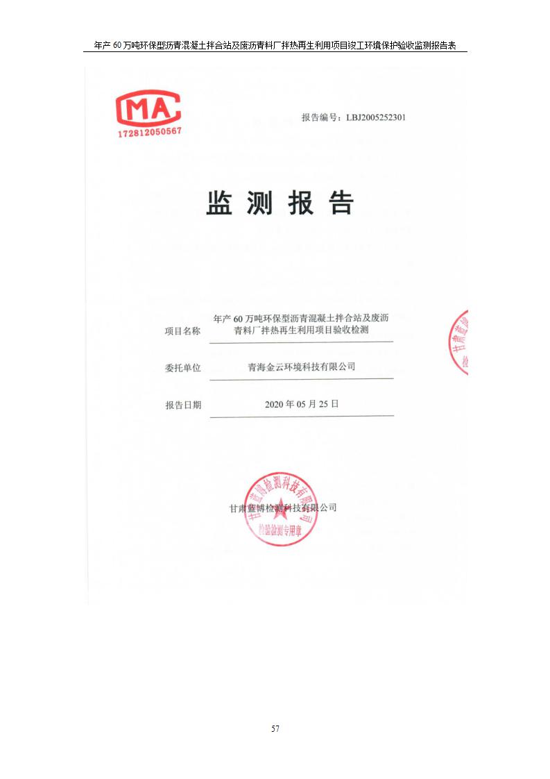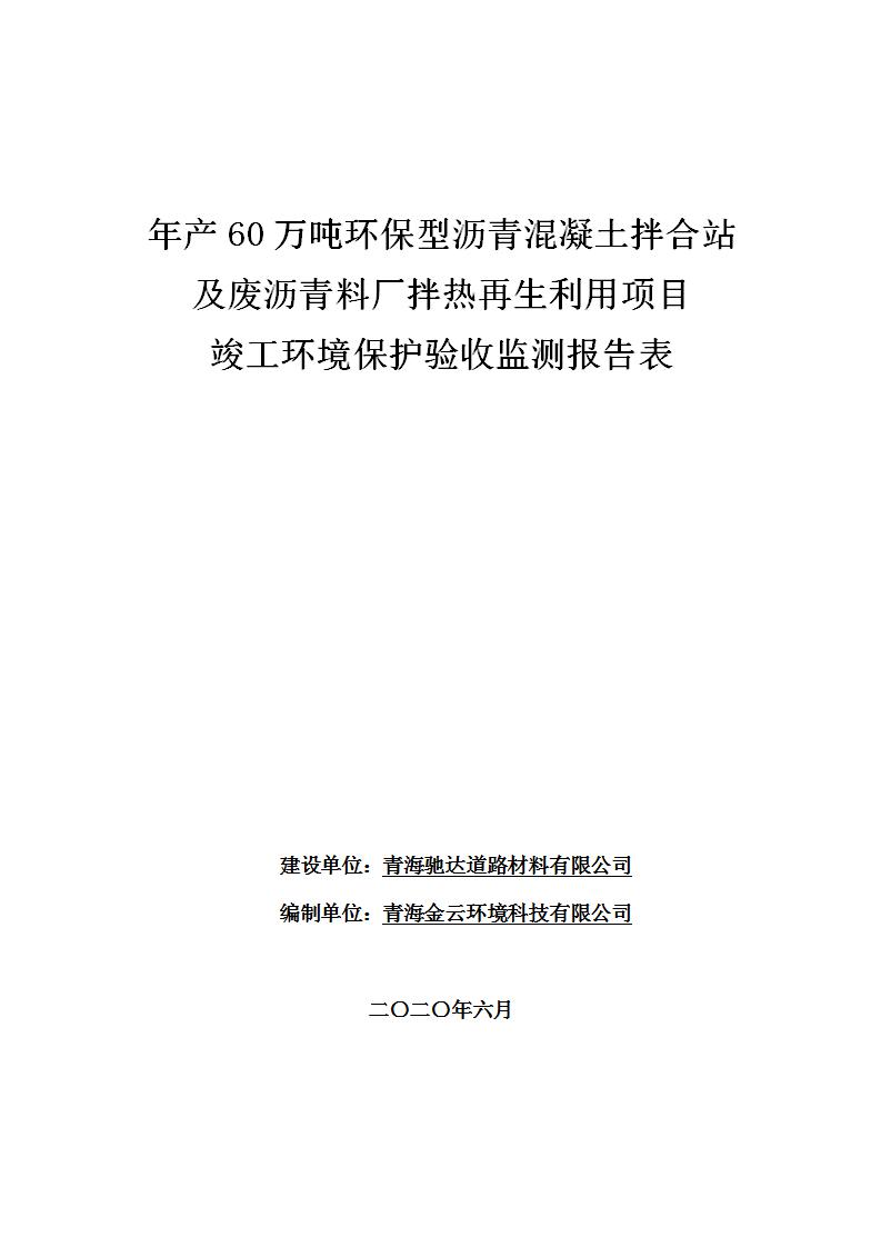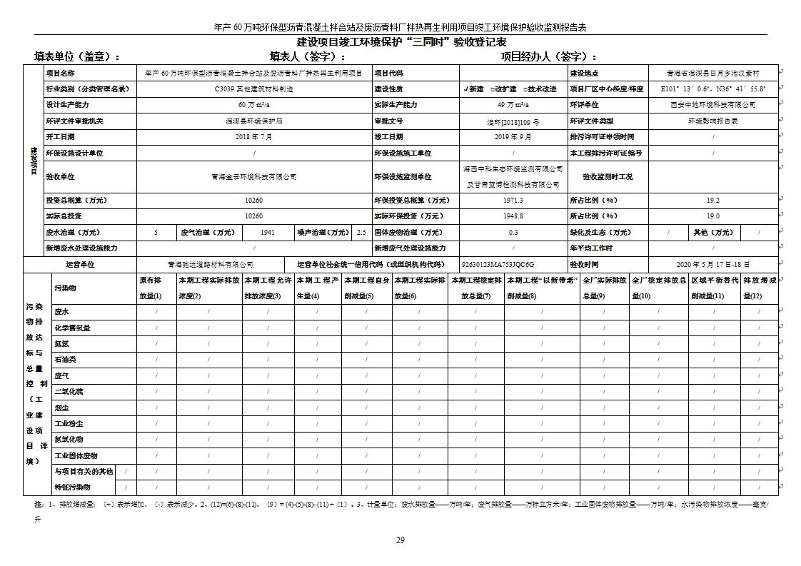 年產(chǎn)60萬(wàn)噸環(huán)保型瀝青混凝土拌合站及廢瀝青料廠拌熱再生利用項(xiàng)目竣工環(huán)境保護(hù)驗(yàn)收監(jiān)測(cè)報(bào)告表公示發(fā)布日期:(2020-7-6) 點(diǎn)擊次數(shù):4115 |