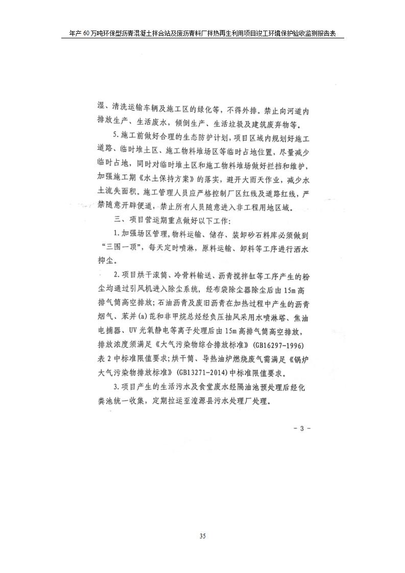根據(jù)中華人民共和國(guó)國(guó)務(wù)院令第682號(hào)《國(guó)務(wù)院關(guān)于修改〈建設(shè)項(xiàng)目環(huán)境保護(hù)管理?xiàng)l例〉的決定》和《建設(shè)項(xiàng)目竣工環(huán)境保護(hù)驗(yàn)收暫行辦法》(國(guó)務(wù)院令682號(hào)),青海馳達(dá)道路材料有限公司年產(chǎn)60萬噸環(huán)保型瀝青混凝土拌合站及廢瀝青料廠拌熱再生利用項(xiàng)目竣工環(huán)境保護(hù)驗(yàn)收監(jiān)測(cè)報(bào)告表公示如下。 一、項(xiàng)目名稱:年產(chǎn)60萬噸環(huán)保型瀝青混凝土拌合站及廢瀝青料廠拌熱再生利用項(xiàng)目竣工環(huán)境保護(hù)驗(yàn)收監(jiān)測(cè)報(bào)告表 二、地點(diǎn):湟源縣日月藏族鄉(xiāng)池漢素村 三、建設(shè)單位:青海馳達(dá)道路材料有限公司 四、建設(shè)內(nèi)容:本項(xiàng)目共有2條瀝青砼生產(chǎn)線及1條穩(wěn)定土生產(chǎn)線,配套辦公樓等。 五、聯(lián)系人:楊工 六、聯(lián)系電 話:0971-6515411 七、公示時(shí)間:二〇二〇年七月六日至二〇二〇年七月三十一日 公示期間,對(duì)上述公示內(nèi)容如有異議,請(qǐng)以書面形式反饋,個(gè)人須署真實(shí)姓名,單位須加蓋公章。