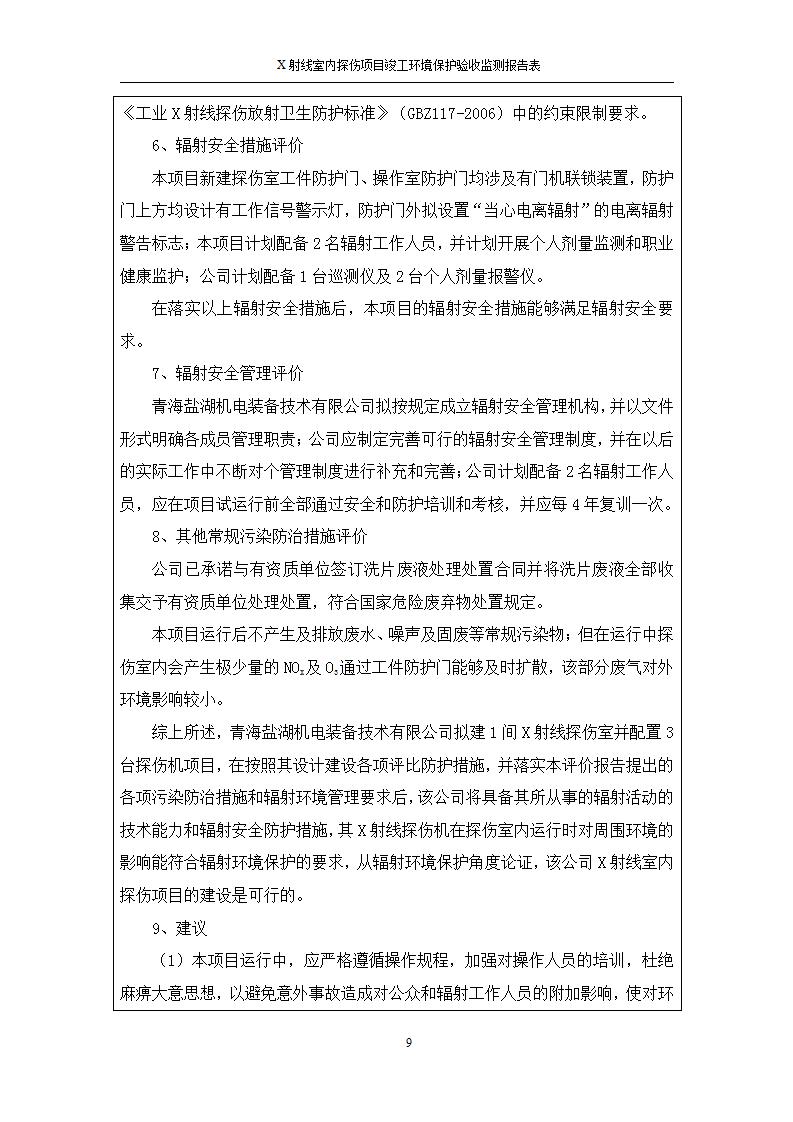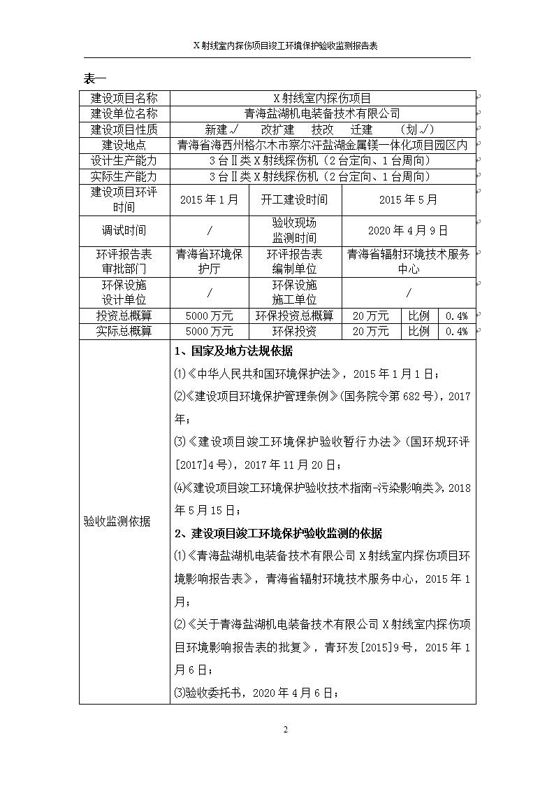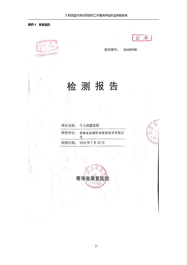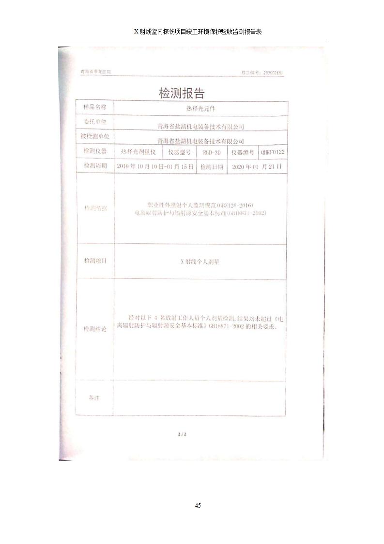青海鹽湖機(jī)電裝備技術(shù)有限公司X射線室內(nèi)探傷項(xiàng)目竣工環(huán)境保護(hù)驗(yàn)收監(jiān)測(cè)報(bào)告表公示發(fā)布日期:(2020-7-10) 點(diǎn)擊次數(shù):3482 |