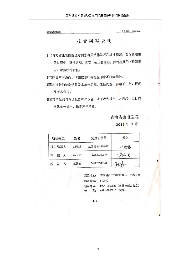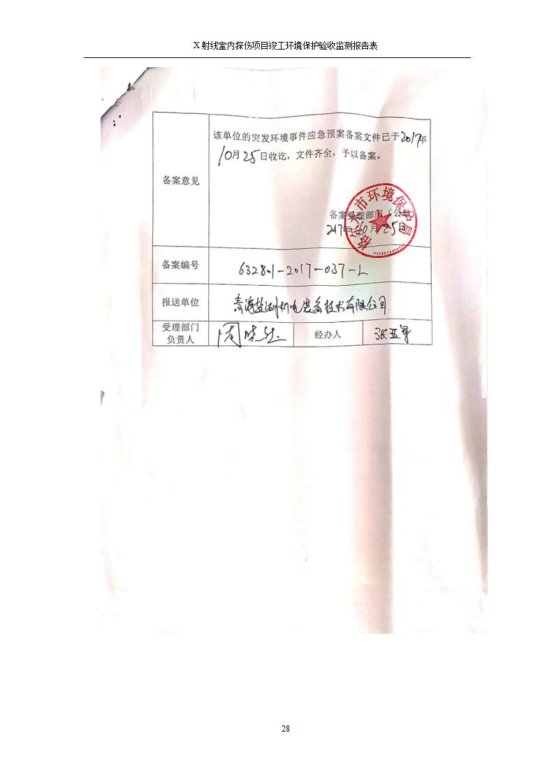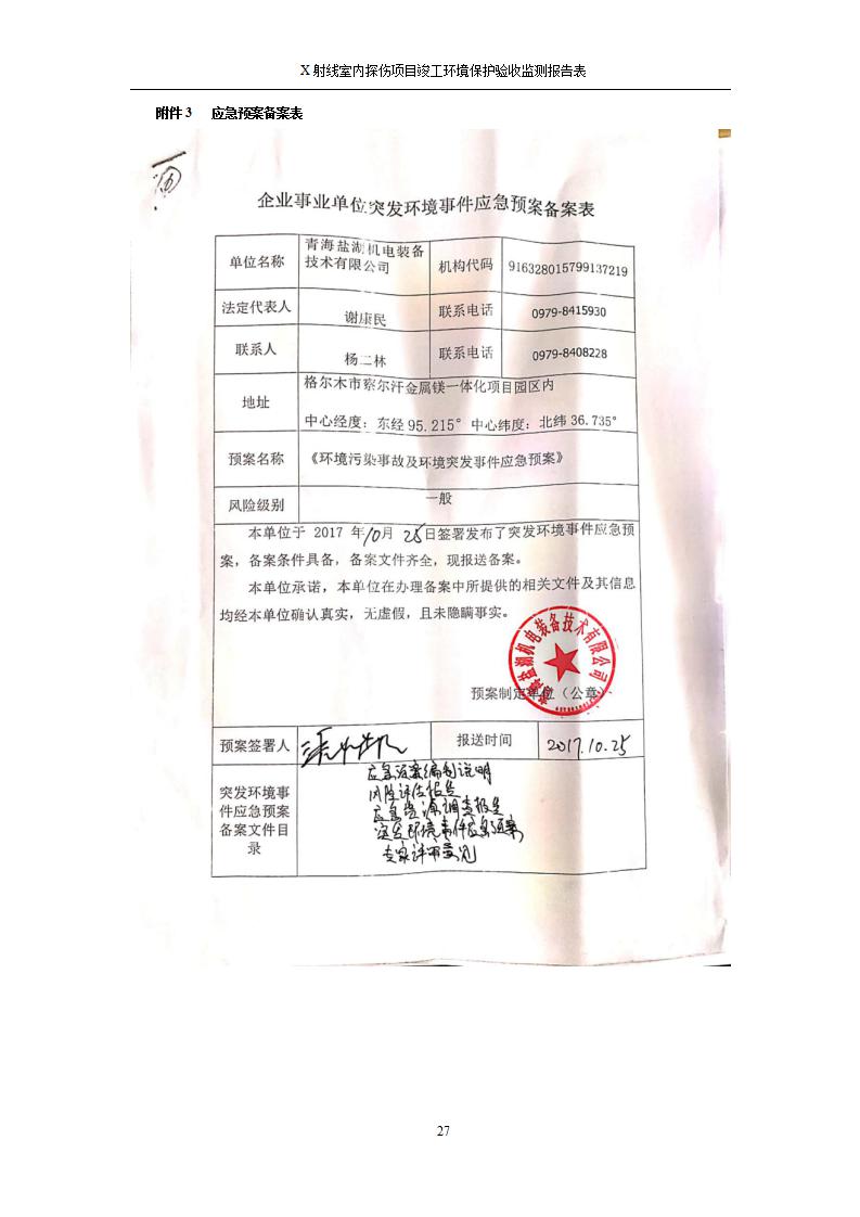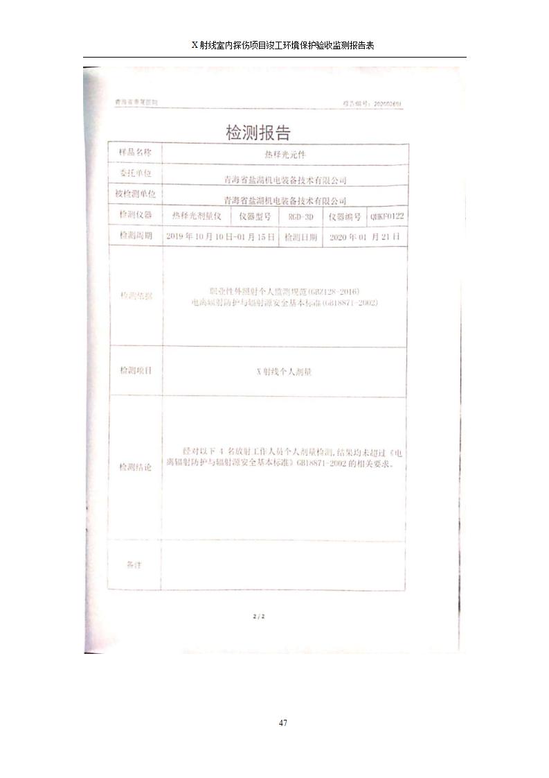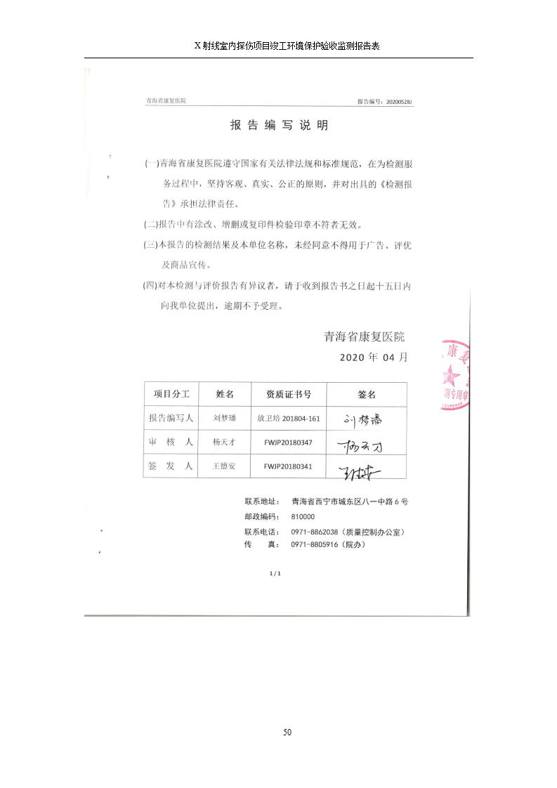 青海鹽湖機(jī)電裝備技術(shù)有限公司X射線室內(nèi)探傷項(xiàng)目竣工環(huán)境保護(hù)驗(yàn)收監(jiān)測(cè)報(bào)告表公示發(fā)布日期:(2020-7-10) 點(diǎn)擊次數(shù):3482 |